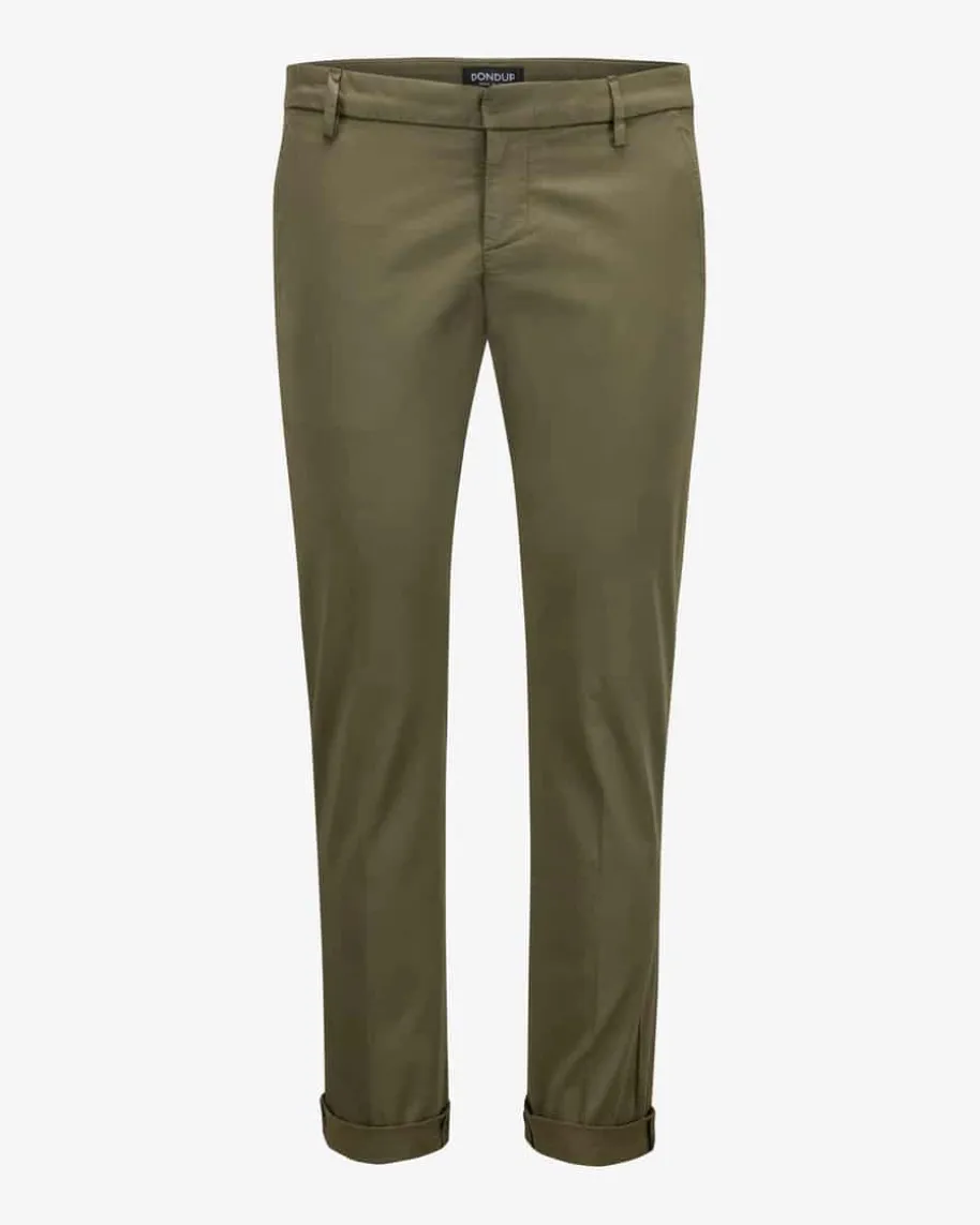 Gaubert Chino für Herren von Dondup in Oliv. Das legereModell aus elastischemBaumwoll-Mix präsentiert sich in schlichter Aufmachung mitsoftem Touch, währendklassische Details einen zeitlosen Begleiter für legereCasual-Looks kreieren.