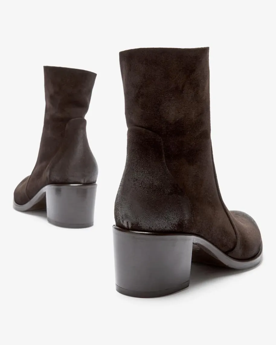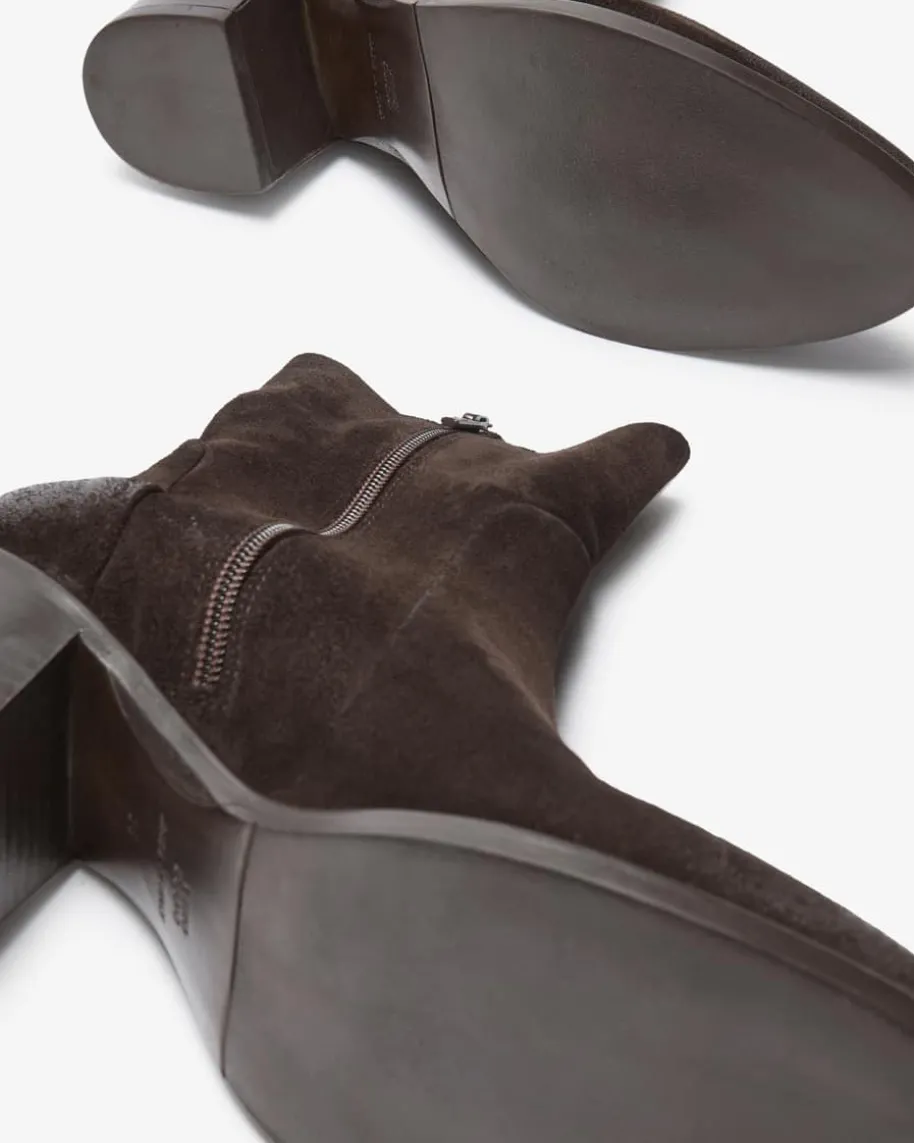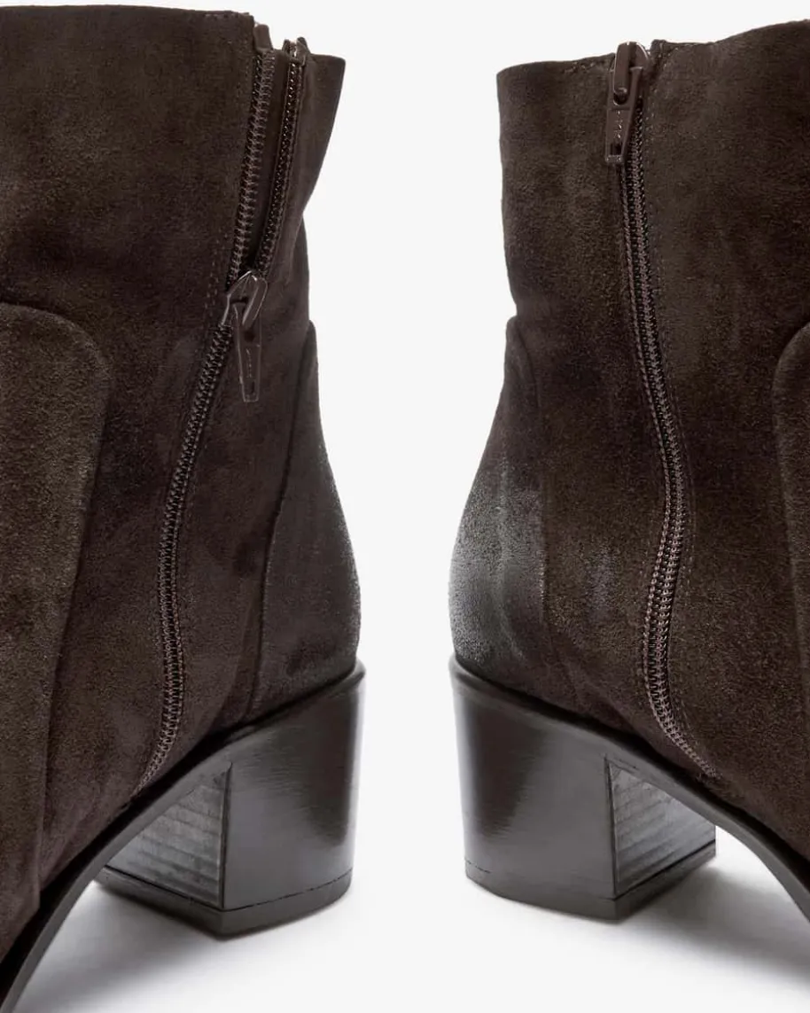 Gemma Stiefeletten für Damen von Strategia in Dunkelbraun. Gefertigt aushochwertigem Velourleder punktet das Modell neben der klassischen Aufmachungauch mit einer angenehmen Haptik. Die spitze Form rundet das Gesamtbild zugleichmit femininer Eleganz ab.