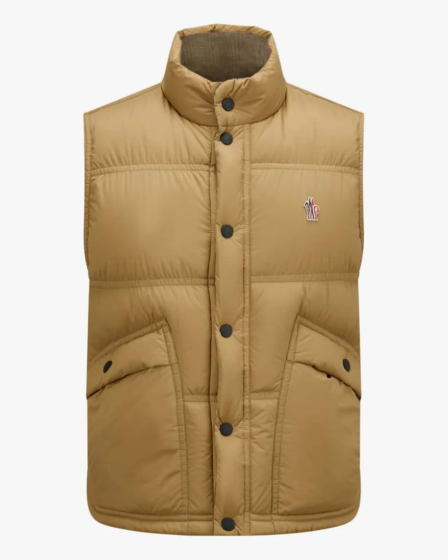 Gilet Daunenweste für Herren von Moncler Grenoble in Oliv. Das gesteppte Modellbesticht in sportiver Aufmachung und überzeugt dank der hochwertigen Daunen-Feder-Füllung mit optimaler Wärmeisolation. Das Innenfutter in Kunstfell-Optikrundet das Gesamtbild harmonisch ab.
