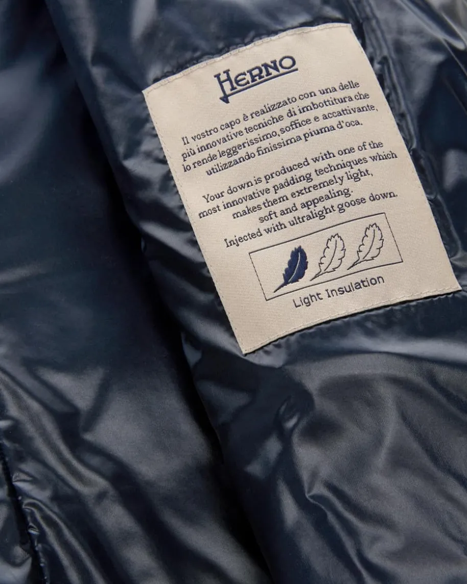 Giulia Daunenweste für Damen von Herno in Navy. Das italienische Premium Labelist seit Jahren bekannt für seine besonders leichten Daunenjacken, die mitzeitlos-sportiven Designs überzeugen. Auch dieses Modell überzeugt durch seinebesonders leichte Material-Verarbeitung in changierender Stepp-Optik, währenddie taillierte Passform Ihre Figur feminin in Szene setzt.
