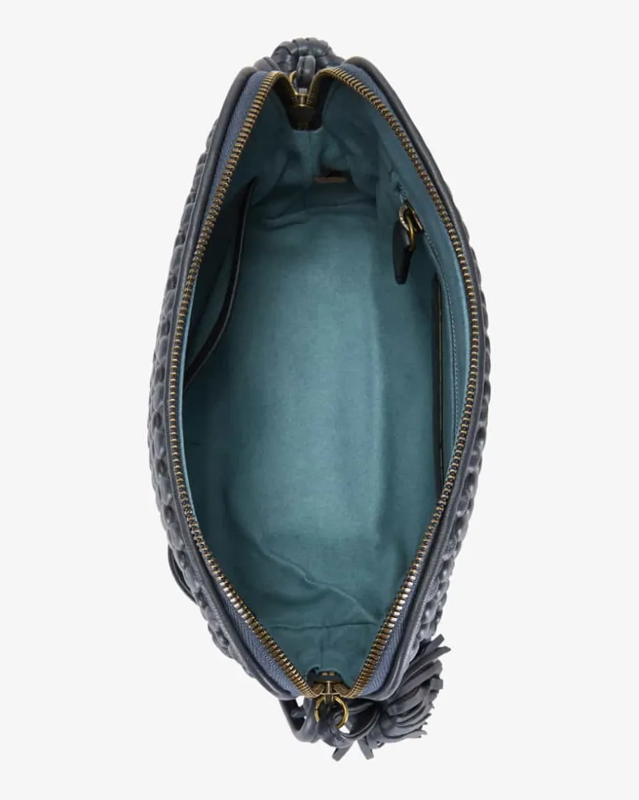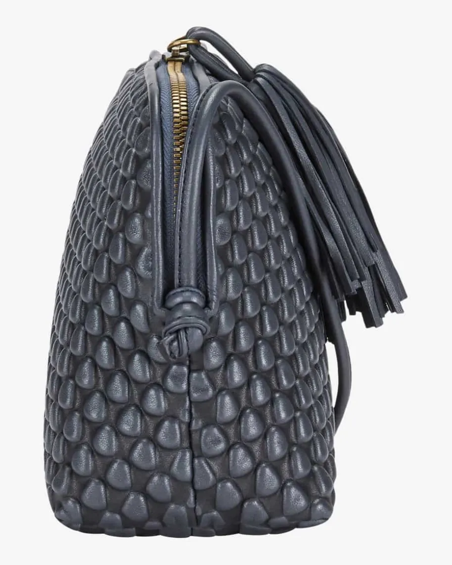 Gizmo Umhängetasche für Damen von Tissa Fontaneda in Navy. Das 2010 gegründeteLabel vereint Handwerkliches Können und Liebe zum Detail. Die sofort erkennbare„Bubble Bag“ ist zum Markenzeichen der Kollektion Tissa Fontaneda geworden. Auchdieses Modell begeistert in charakteristischer Aufmachung mit strukturierterOptik, während die Quasten-Applikation den letzten Schliff verleiht.