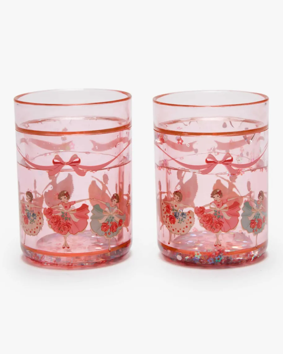 Glitter Gläser-Set für Kinder von Konges Slojd. Dieses zuckersüße Set imTänzerinnen-Dessin besticht dank der eingearbeiteten Glitter-Elemente inniedlicher Aufmachung.