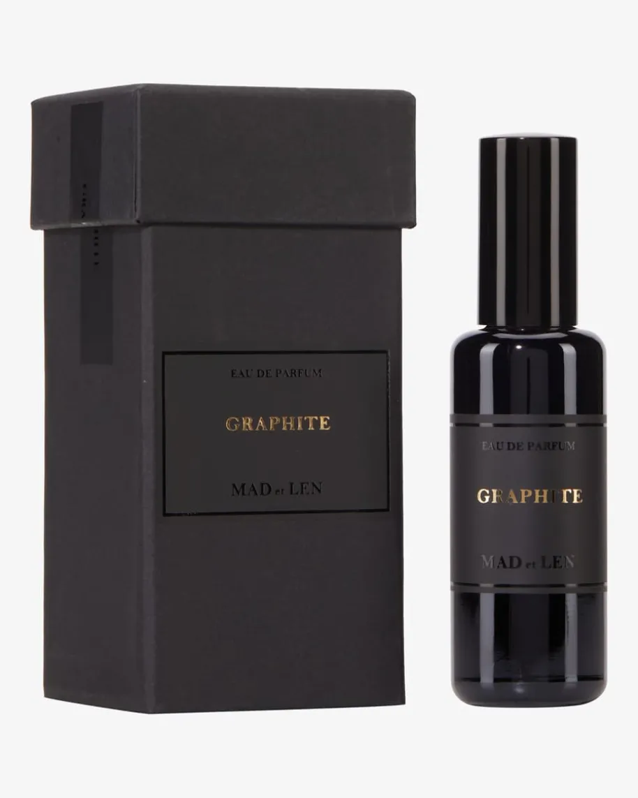 Graphite Eau de Parfum von Mad et Len. Handgefertigt inFrankreich –Leidenschaft und Handwerk zeichnen das Label aus. Die ineiner Manufakturgefertigten Parfums bestechen mit seinen exklusiven wie auchveganen Duftnoten.Das opulente Zusammenspiel aus Kiefer, Campher und Moschuswirkt holzig undaromatisch. Ein warmer Duft, der Damen und Herrengleichermaßen begeistert.