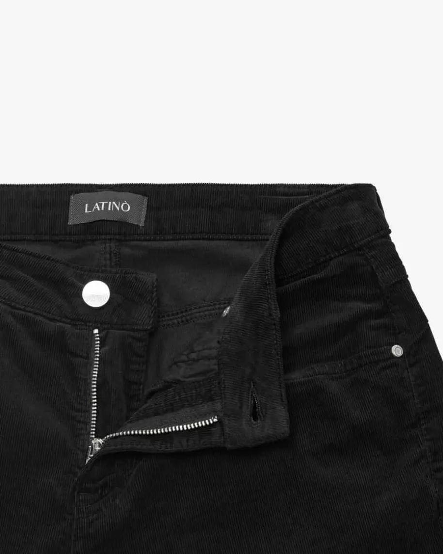 Guenda 7/8-Samthose aus für Damen von Latino in Schwarz. Das Modell bestichtdank dem dezent ausgestellten Bein mit optimaler Passform, während die Samt-Qualität optische wie auch haptische Highlights setzt. Die Logo-Details rundenden Gesamtlook labeltypisch ab.