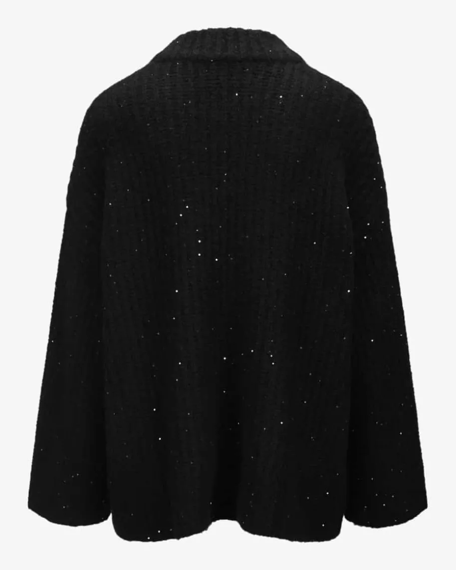 Gunby Strickjacke für Damen von Lu Ren in Schwarz. Dank der Verwendung vonhochwertigem Cashmere-Baumwoll-Mix besticht das Modell mit besonders weichemGriff, während das schwere Strick-Design in Oversize-Passform einen legerenCasual-Favoriten für Ihre Herbst-Winter-Garderobe schafft. Zarte Pailletten-Applikationen sorgen zugleich für einen stilvollen Touch.
