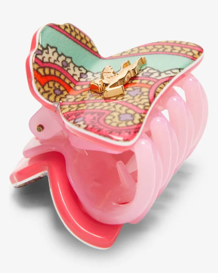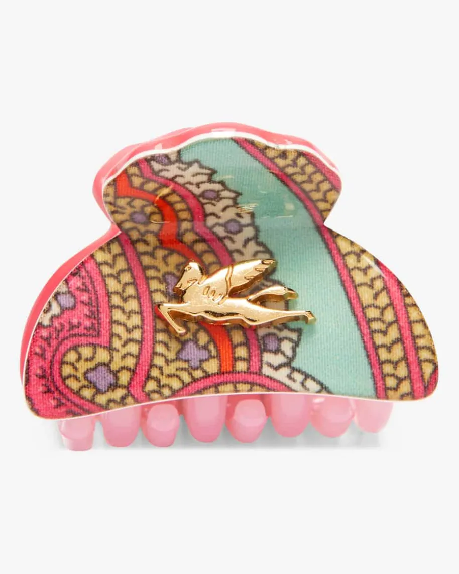 Haarklammer für Damen von Etro in Koralle, Türkis und Bunt. Die Miniklemme wirddurch das raffinierte Dessin sowie der Logo-Applikation geziert und avanciert sozumstilvollen Accessoire, das jeder Frisur das gewisse Etwas verleiht.