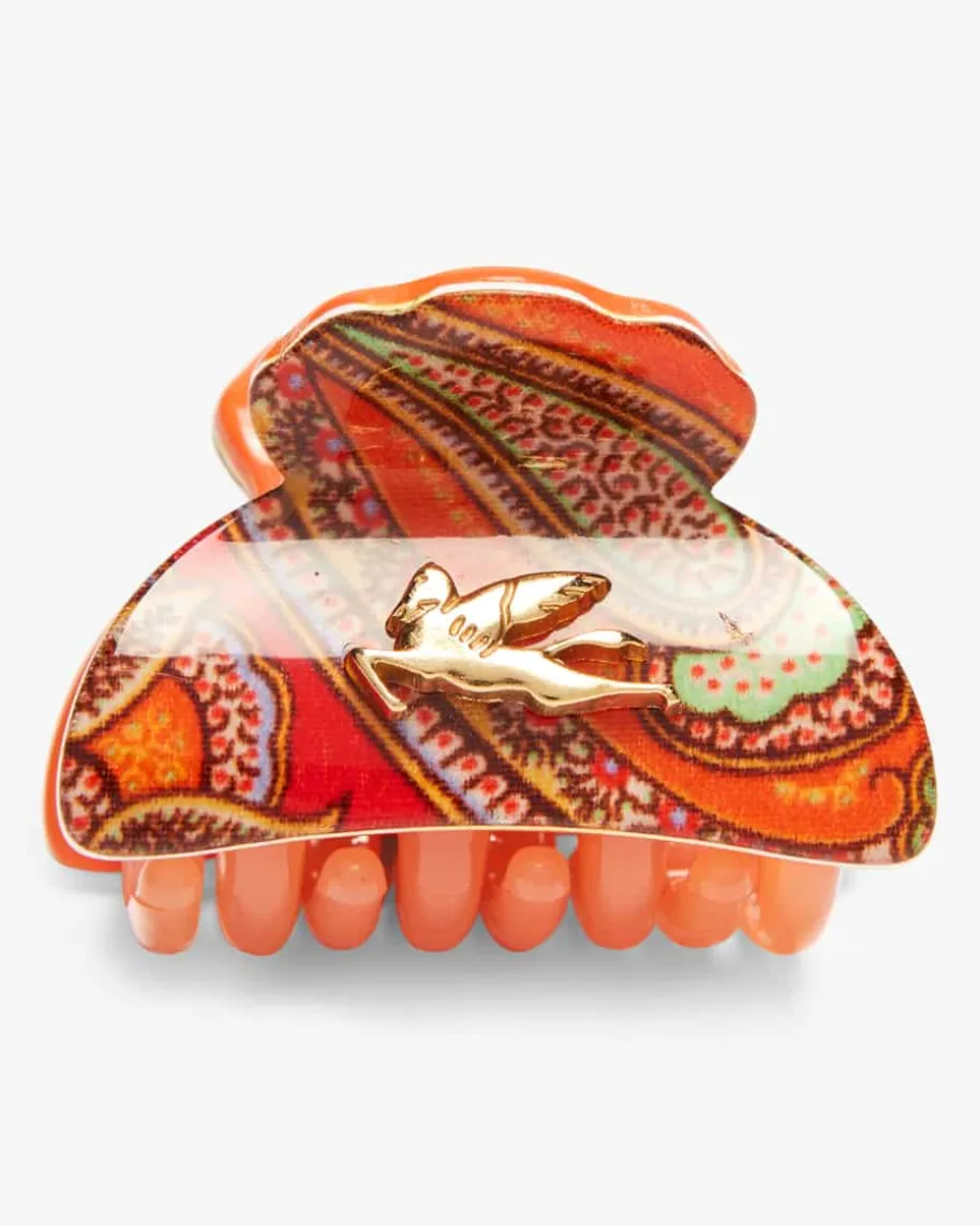 Haarklammer für Damen von Etro in Rot, Orange und Bunt. Die Miniklemme wirddurch das raffinierte Dessin sowie der Logo-Applikation geziert und avanciert sozumstilvollen Accessoire, das jeder Frisur das gewisse Etwas verleiht.