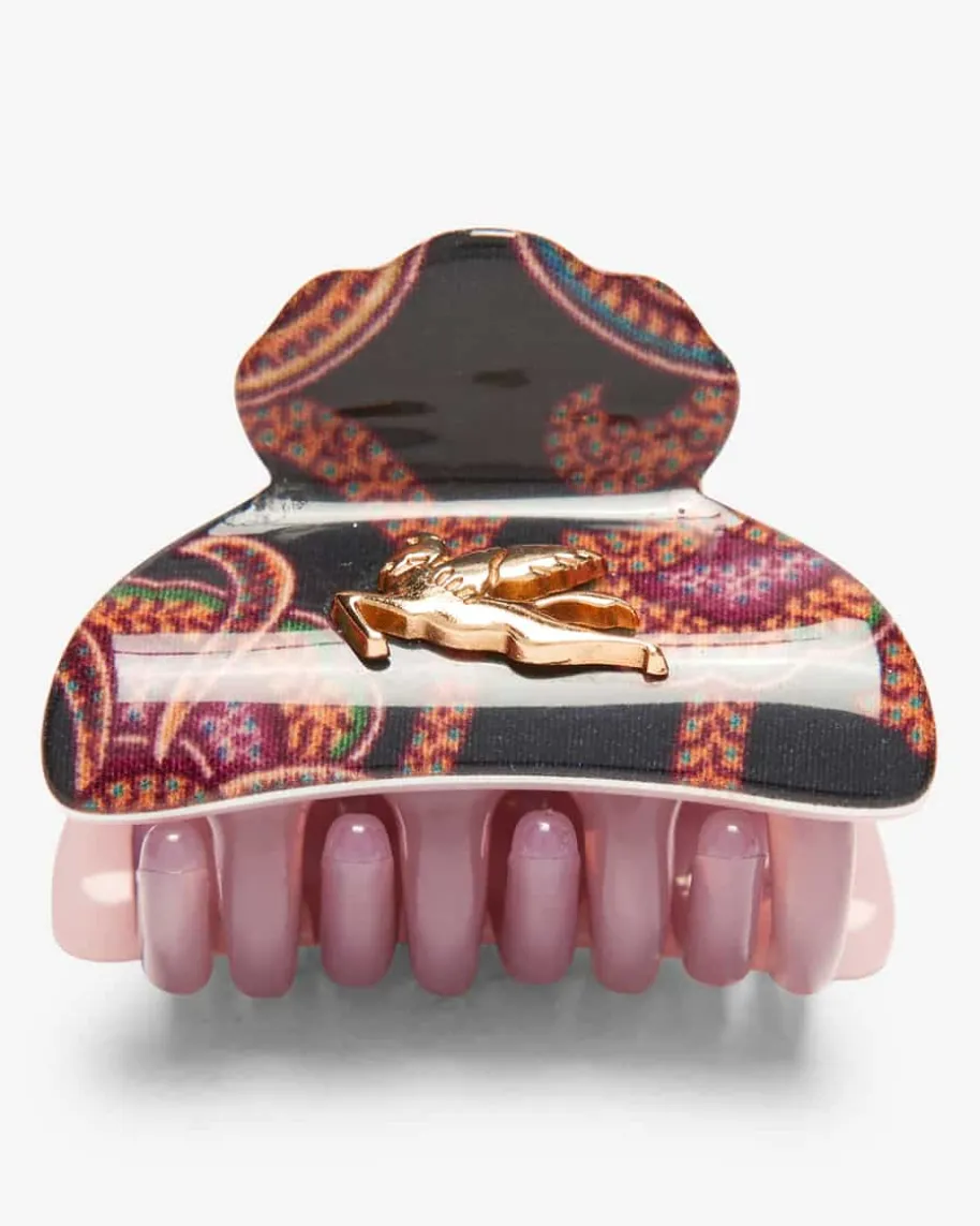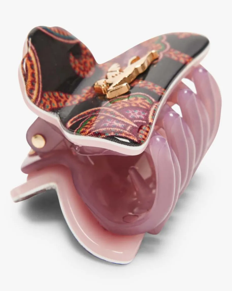 Haarklammer für Damen von Etro in Navy, Violett und Terrakotta. Die Miniklemmewirddurch das raffinierte Dessin sowie der Logo-Applikation geziert und avanciert sozumstilvollen Accessoire, das jeder Frisur das gewisse Etwas verleiht.