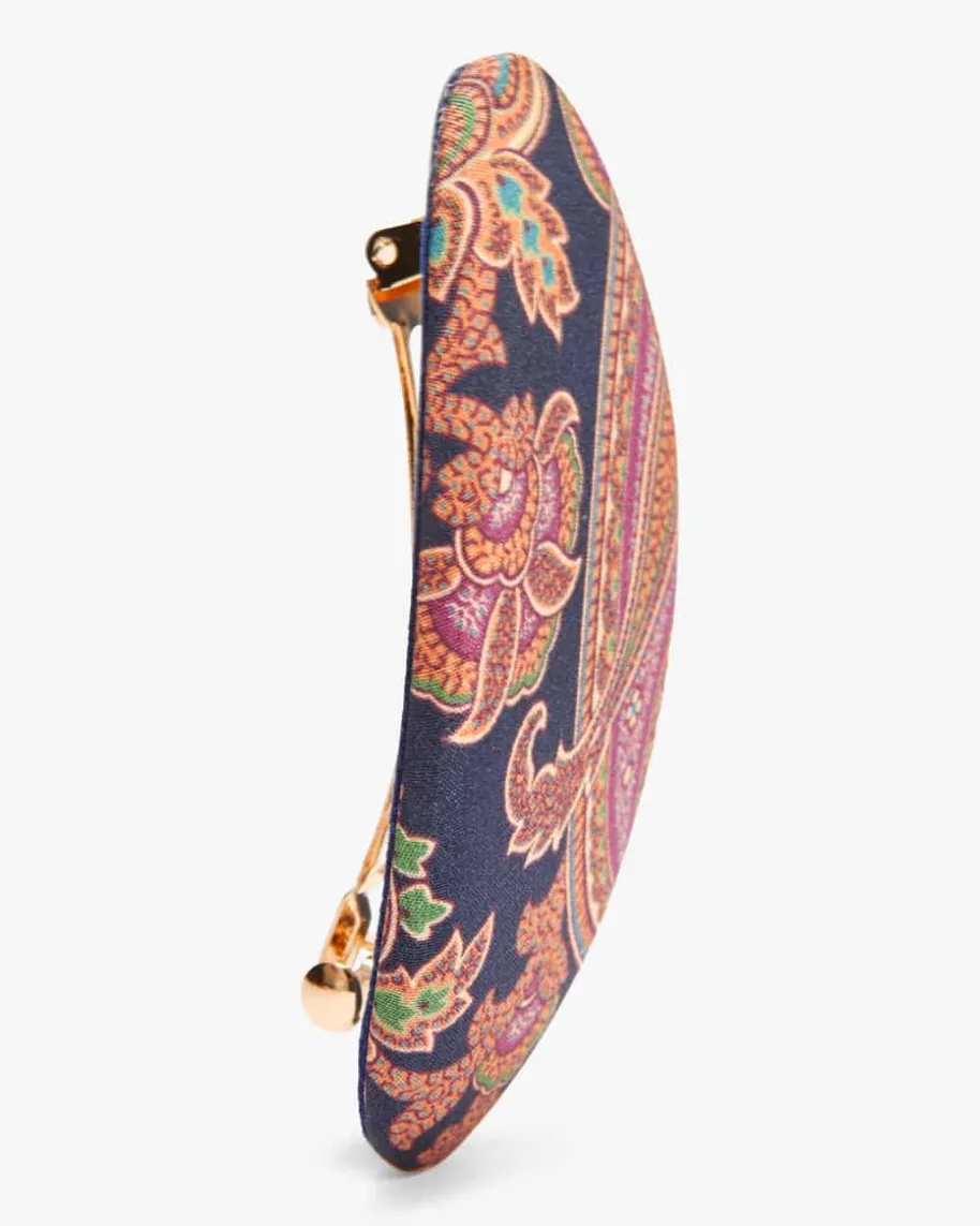 Haarspange für Damen von Etro in Navy, Violett und Terrakotta. Das Modell ausedler Seiden-Qualität avanciert zum stilvollen Accessoire, das jeder Frisur dasgewisse Etwas verleiht. Zugleich setzt das labeltypische Paisley-Muster dasGesamtbild gekonnt in Szene.
