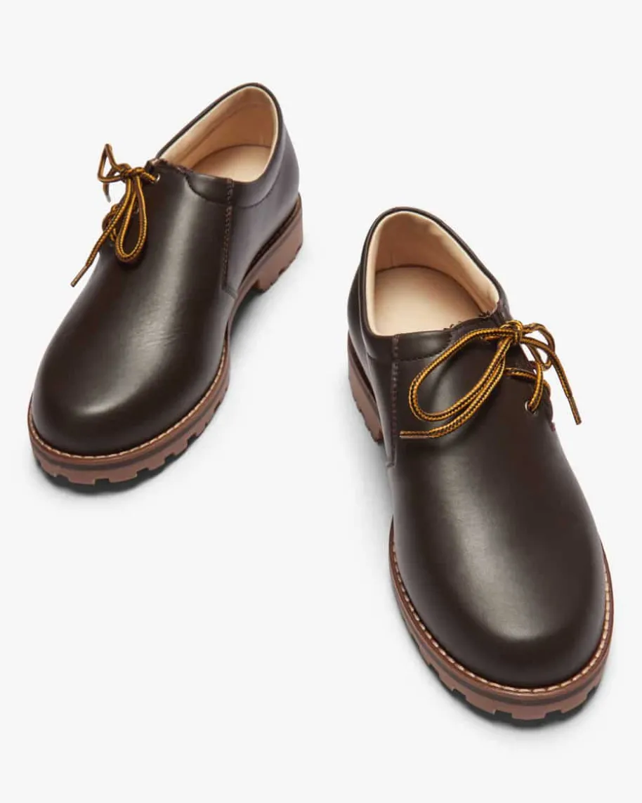 Haferlschuhe für Jungen von LODENFREY in Braun. Das klassische Modell ausangenehmem Glattleder präsentiert sich in traditioneller Aufmachung. Eine legereseitliche Schnürung erleichtert den Einstieg, während die markante Gummisohleden Haferlschuh gekonnt ergänzt.