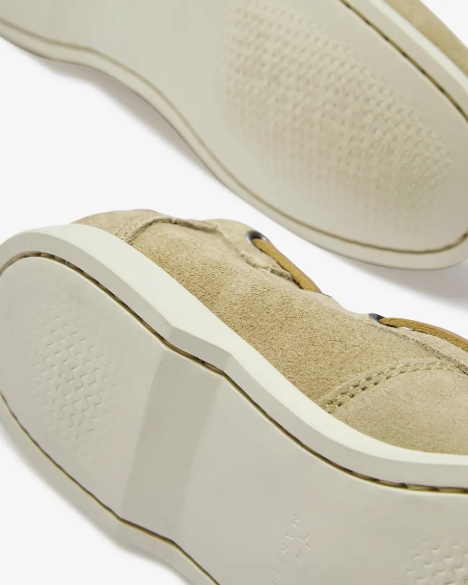 Hamptons Bootsschuhe für Herren von Manebi in Beige. Der edle Schuh präsentiertsich mit hochwertig verarbeitetem Veloursleder. Zugleich vollendencharakteristische Wulstnähte den stilvollen Casual-Begleiter gekonnt, währenddie raffinierte Schnürung in Verbindung mit dem Logo-Detail das Gesamtbildgekonnt abrunden.