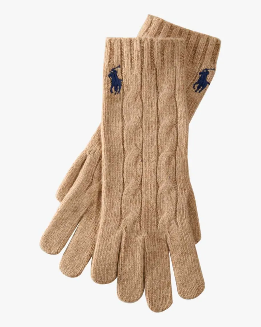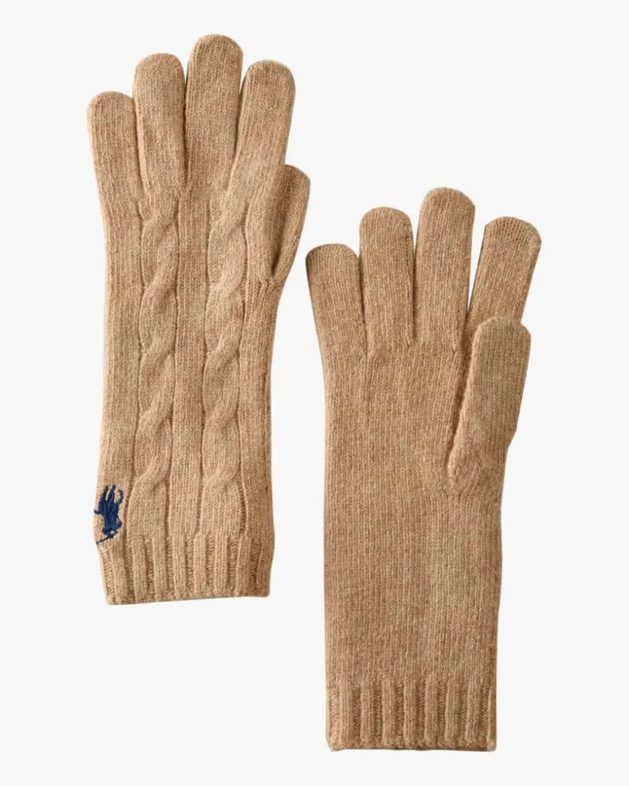 Handschuhe für Damen von Polo Ralph Lauren in Camel. Das Modell begeistert dankdes hochwertigen Woll-Cashmere-Mix mit angenehmem Tragegefühl, während daszeitlose Zopfstrick-Design mit Rippstrick-Bündchen einen perfekten Begleiter fürkalte Tage kreiert.