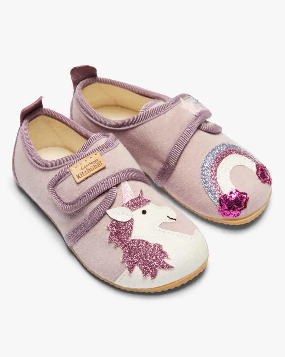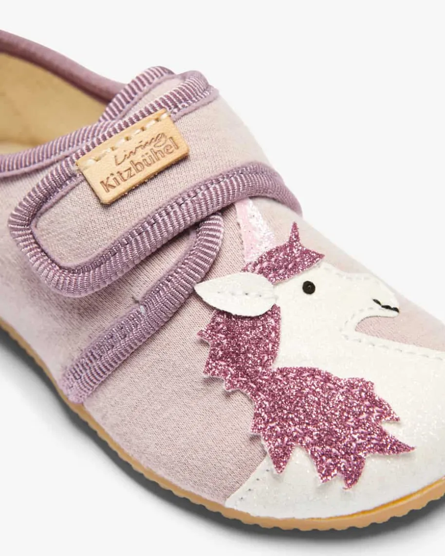 Hausschuhe für Mädchen von Living Kitzbühel in Altrosa und Weiß. Das Modellbegeistert mit angenehmem Tragekomfort, während das niedliche Einhorn-Motiv inGlitzer-Optik ein verspieltes Gesamtbild kreiert.