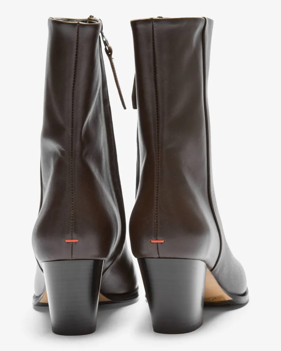 Hedvig Stiefeletten für Damen von Ayede in Mokka. Dank der Verwendung vonglattem Kalbsleder entsteht ein hochwertiger Schuh, während die Cowboystiefel-Silhouette mit charakteristischem Absatz und spitzer Form einen modischenEquestrian-Charakter verleiht.
