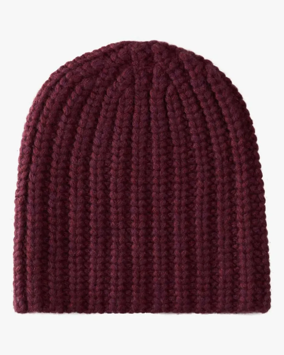 Heidi Cashmere-Mütze für Damen von Warm-Me in Bordeaux. Das Modell begeistertdank der hochwertigen Cashmere-Qualität mit angenehmen Tragemomenten, währenddas bicolor Grobstrick-Design einen modernen Casual-Begleiter für kalte Tageschafft.