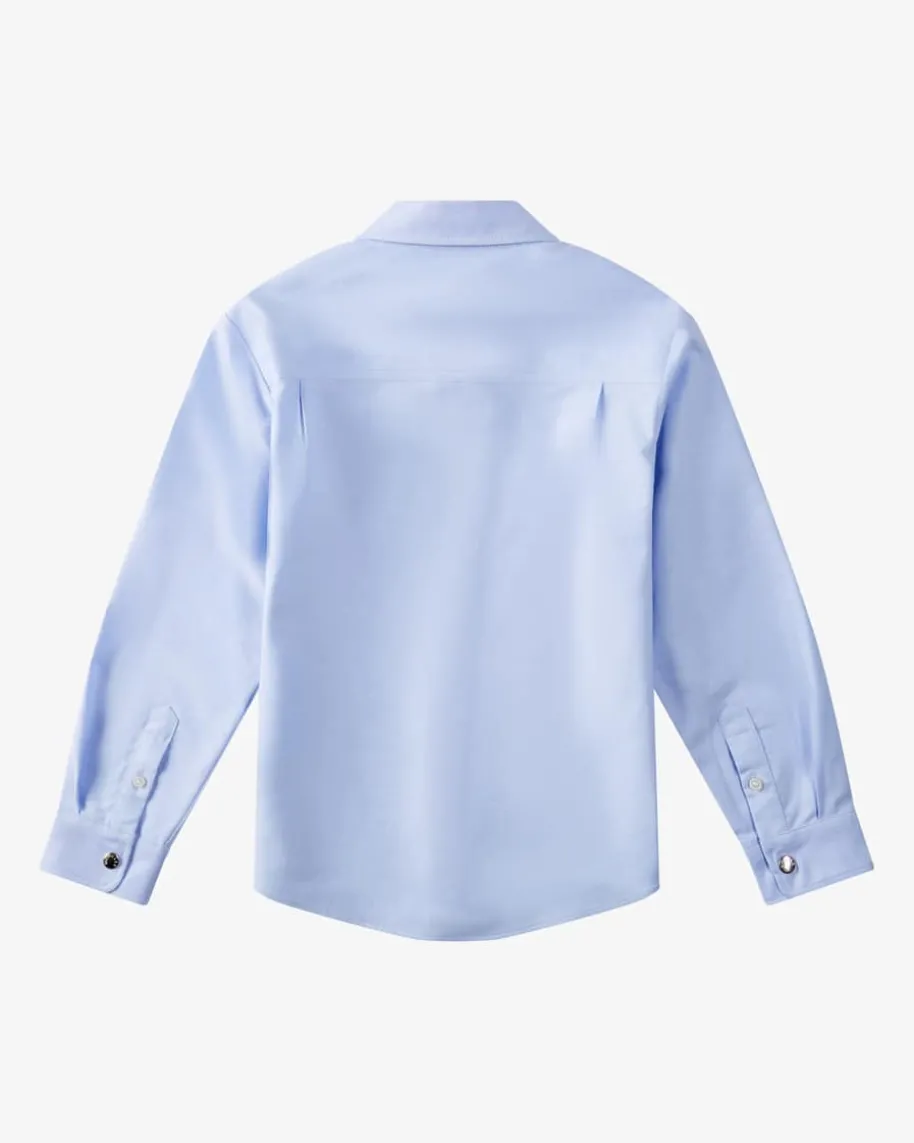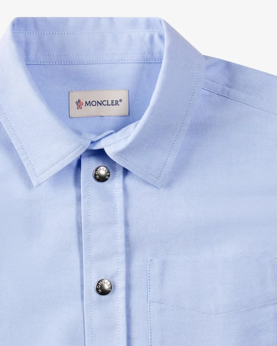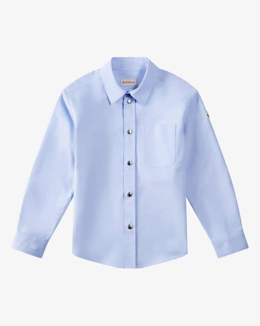 Hemd für Jungen von Moncler Enfant in Hellblau. Das gerade Modell präsentiertsich in changierenden Dessin und elegant-klassischen Details, während diehochwertige Baumwoll-Qualität für ein angenehmes Tragegefühl sorgt.