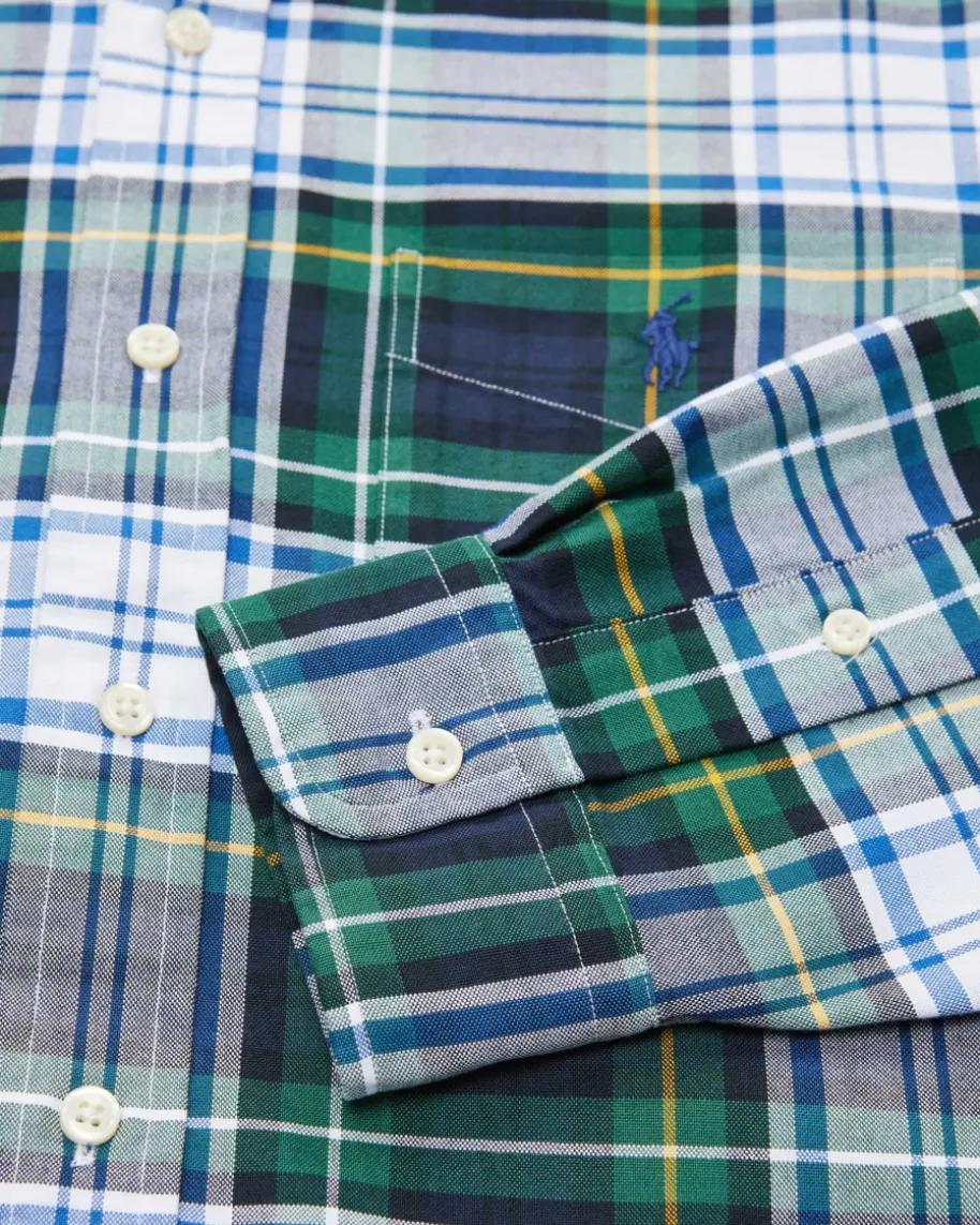Hemd Custom Fit für Herren von Polo Ralph Lauren in Dunkelgrün, Blau und Weiß.Das antaillierte Modell begeistert mit weicher Baumwoll-Qualität und modernemKaromuster, während klassische Details sowie die charakteristische Logo-Stickerei das Gesamtbild maskulin vollenden.