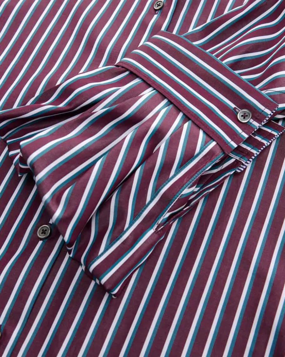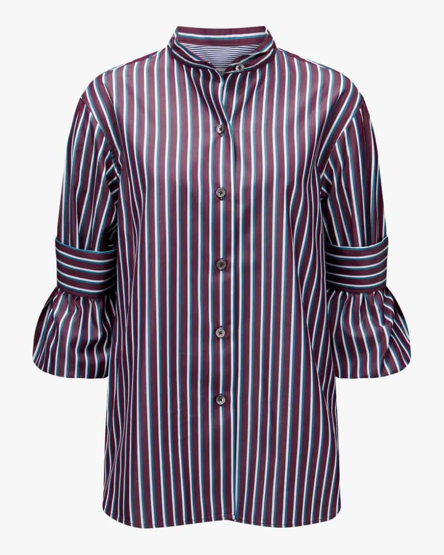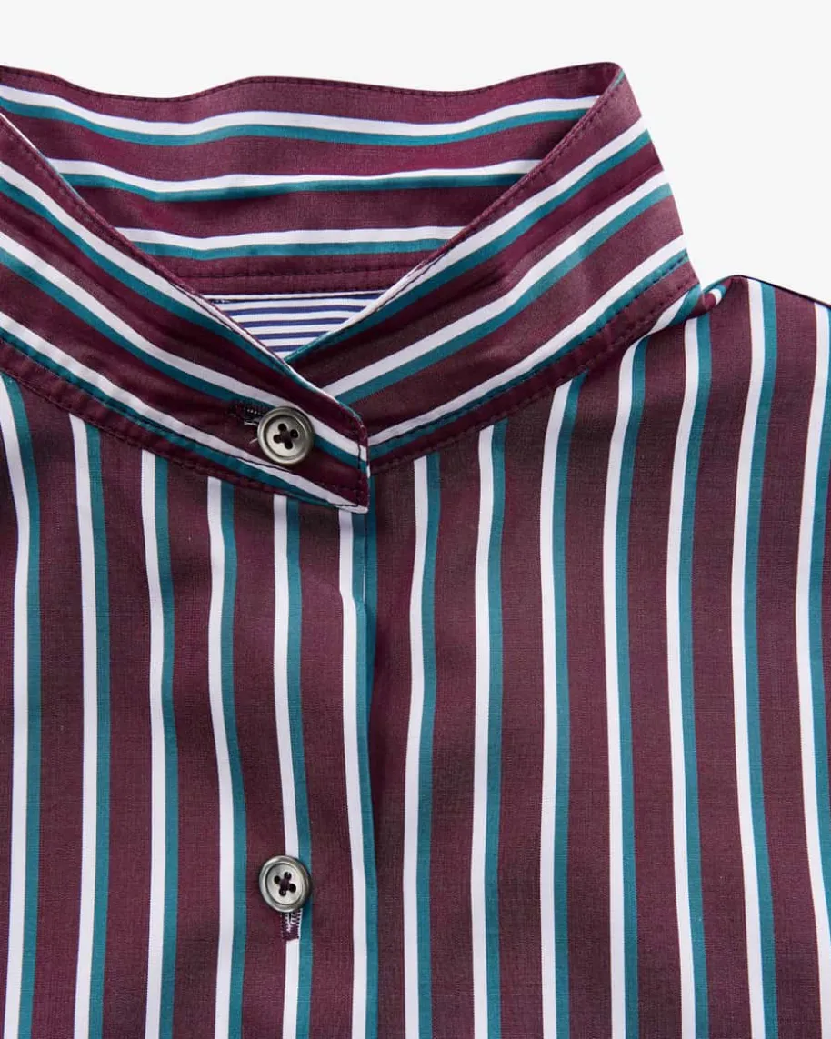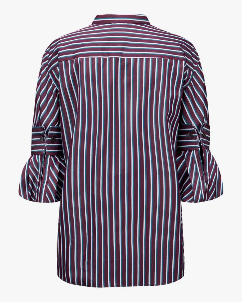 Hemdbluse für Damen von Odeeh in Bordeaux, Petrol und Weiß. Dank der leichtenBaumwoll-Qualität punktet das Modell mit angenehmer Haptik und stilvoller Optik,während das feine Streifenmuster ein modisches Gesamtbild kreiert. Die variablenÄrmel mit feinem Besatz runden vielseitigen Look gekonnt ab.