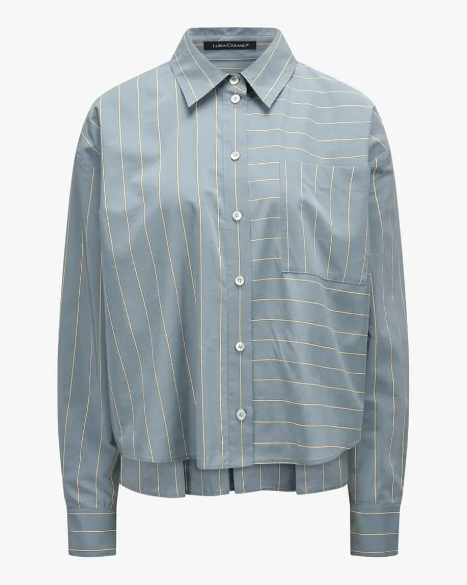 Hemdbluse für Damen von Luisa Cerano in Blaugrau. Das Modell begeistert mitleichtem Baumwoll-Mix in feiner Struktur, welche ein angenehmes Tragegefühlbeschert. Das Streifen-Dessin und klassische Details kreieren einen femininenGesamt-Look mit besonderem Touch.