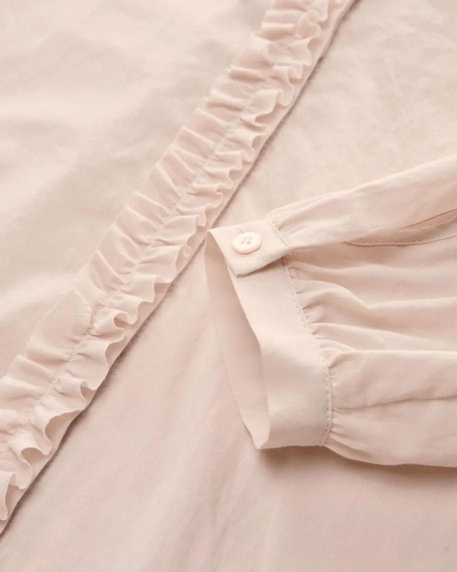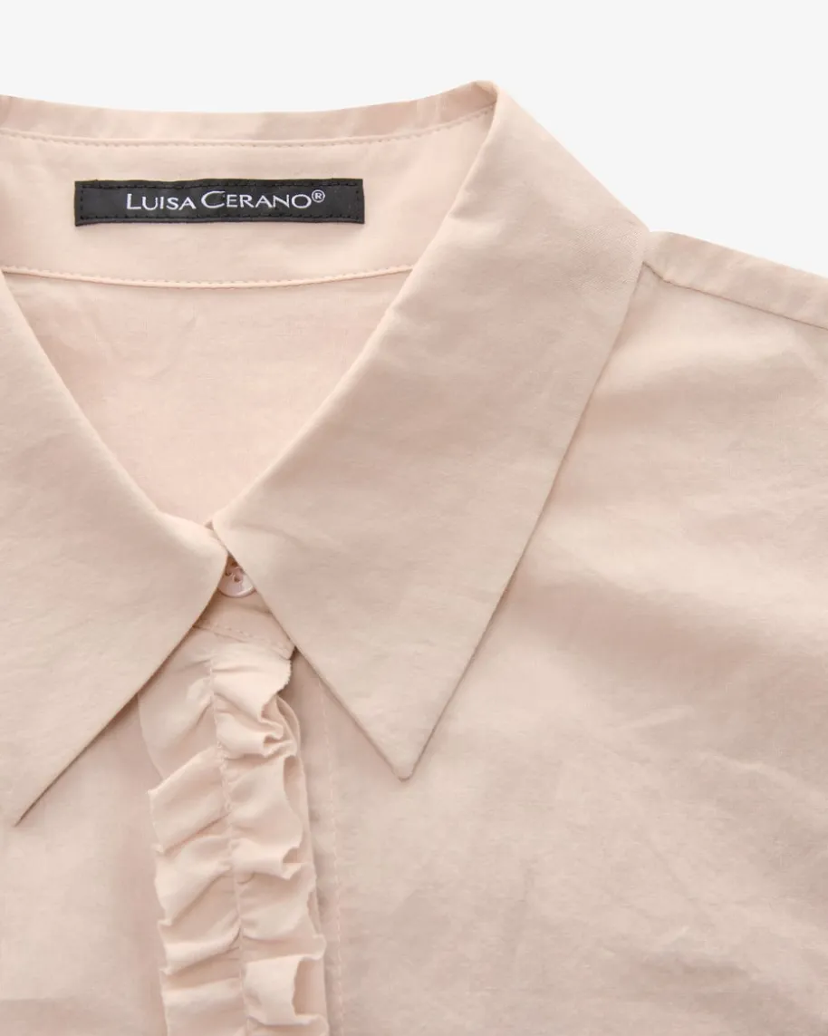 Hemdbluse für Damen von Luisa Cerano in Puder. Das Modell begeistert inklassischer Baumwoll-Qualität, welche ein angenehm-leichtes Tragegefühlbeschert. Zudem wird das klassische Hemdblusen-Design durch den Rüschen-Besatzan der Knopfleiste romantisch in Szene gesetzt.