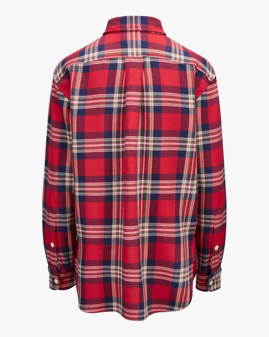 Hemdbluse Relaxed Fit für Damen von Polo Ralph Lauren in Rot und Bunt. DasModell aus weicher Baumwoll-Flanell-Qualität präsentiert sich als modischerFavorit im Classic Heritage Look, der durch das legere Karo-Dessin und dielabeltypische Poloreiter-Stickerei harmonisch abgerundet wird.