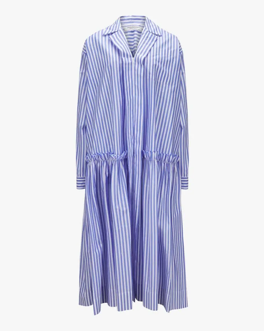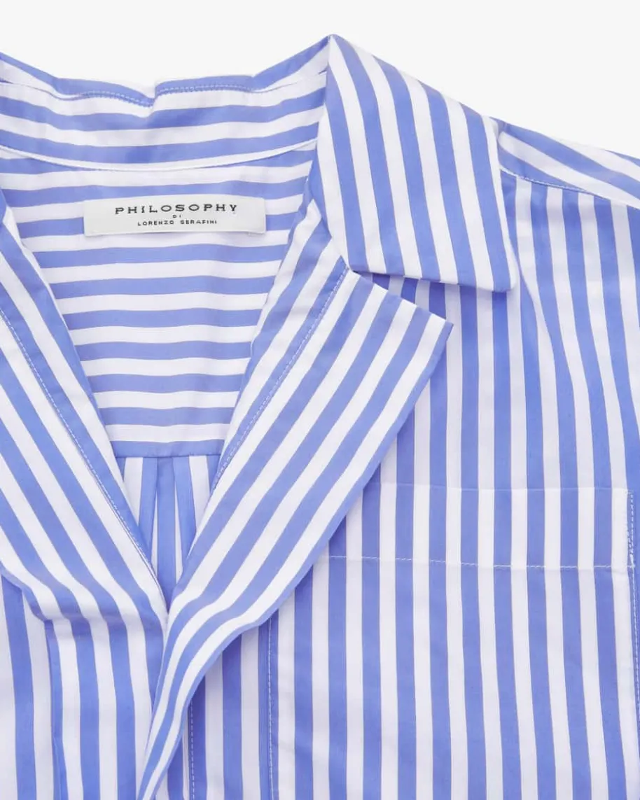 Hemdblusenkleid für Damen von Philosophy in Blau und Weiß. Das extravaganteOversize-Modell begeistert dank besonderem Schnitt und Allover-Streifen-Dessin,während die Taschen den legeren Look unterstreichen runden klassische Detailsdas Gesamtbild harmonisch ab.
