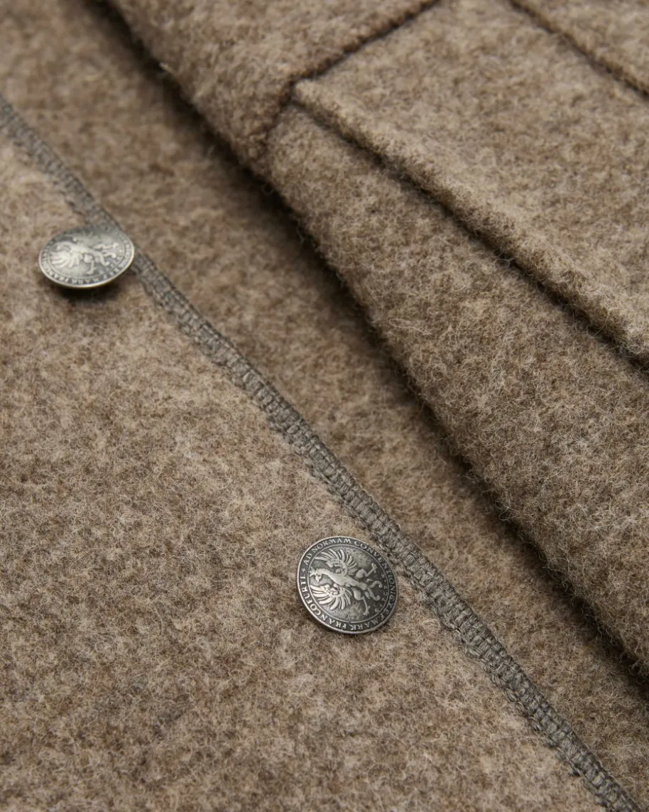 Hermann Trachten-Janker für Herren von Stapf in Braun und Grau. Dank der reinenSchurwoll-Verarbeitung in rustikaler Aufmachung präsentiert sich das Modell alszeitloser Trachten-Begleiter, während die Strick-Elemente sowie die flachenWappenknöpfe das Gesamtbild traditionell abrunden.
