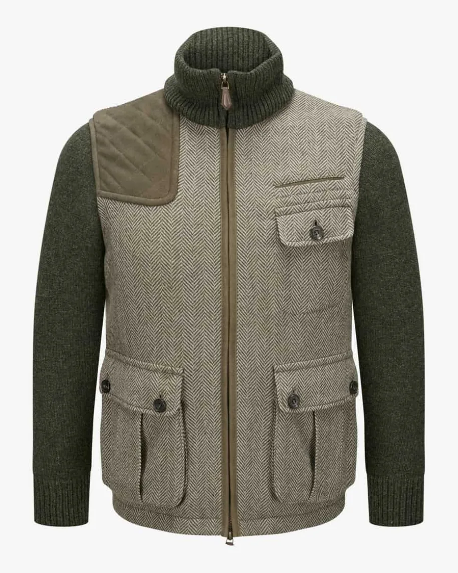Hirschenau Trachtenjacke für Herren von Habsburg in Oliv und Beige. Mithochwertiger Schurwoll-Verarbeitung überzeugt dieses Modell sowohl haptisch alsauch optisch, während der Material-Mix modische Akzente setzt. Die weichenVeloursleder-Applikationen runden den Trachten-Look harmonisch ab.
