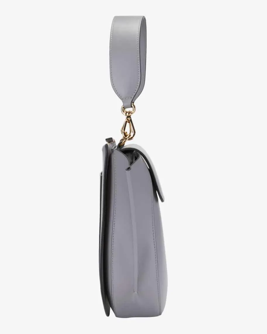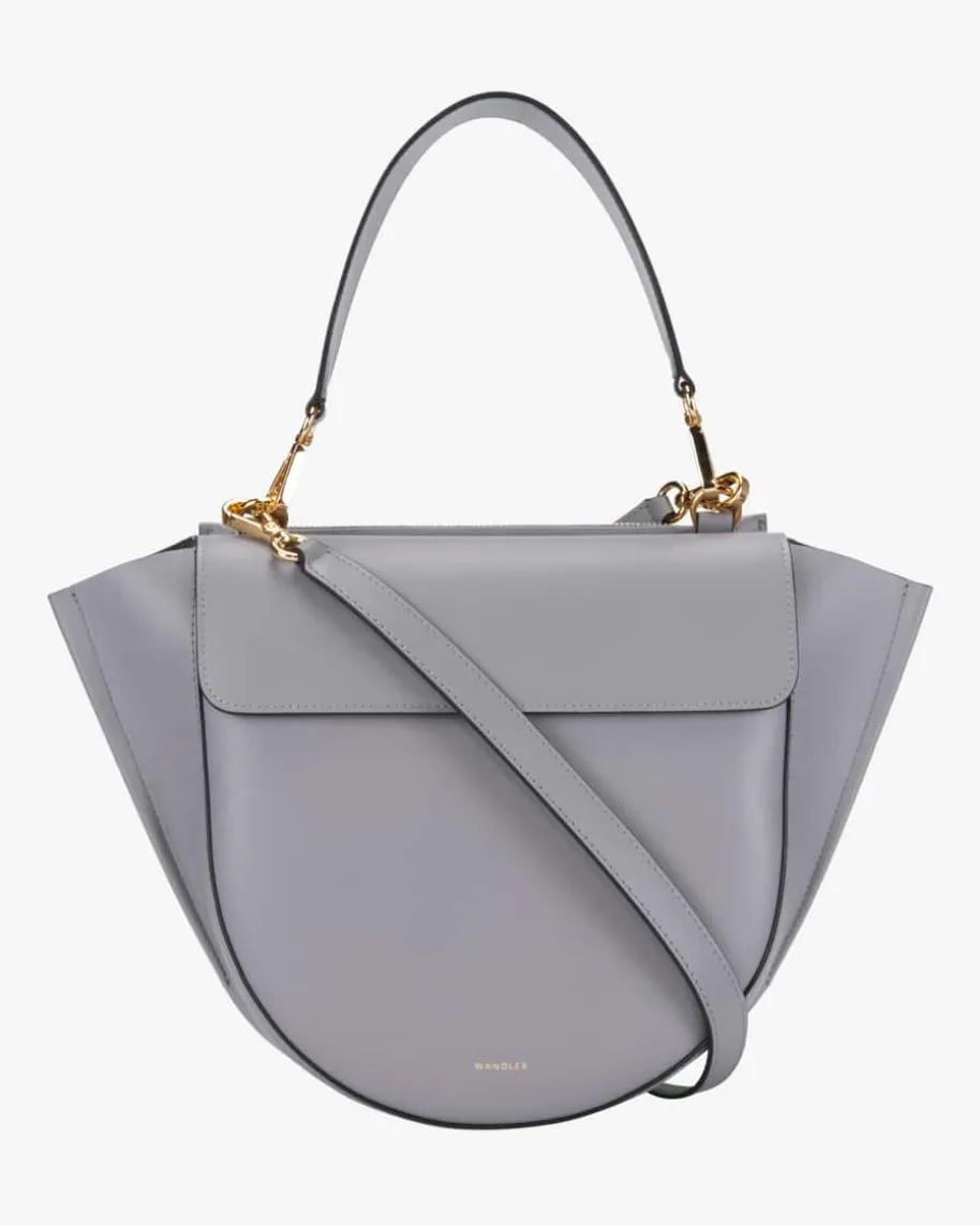 Hortensia Medium Henkeltasche für Damen von Wandler in Grau. Das ausitalienischem Leder gefertigte Modell besitzt eine markante runde Form undbietet genügend Platz für sämtliche Alltagsutensilien.