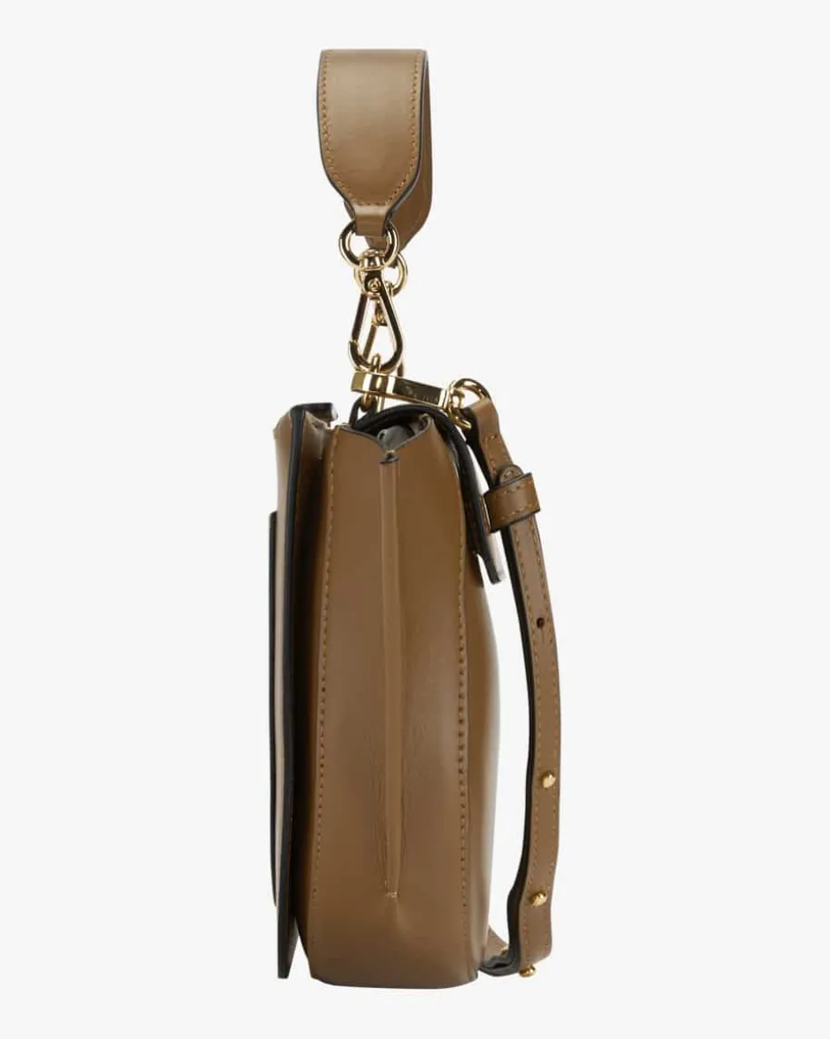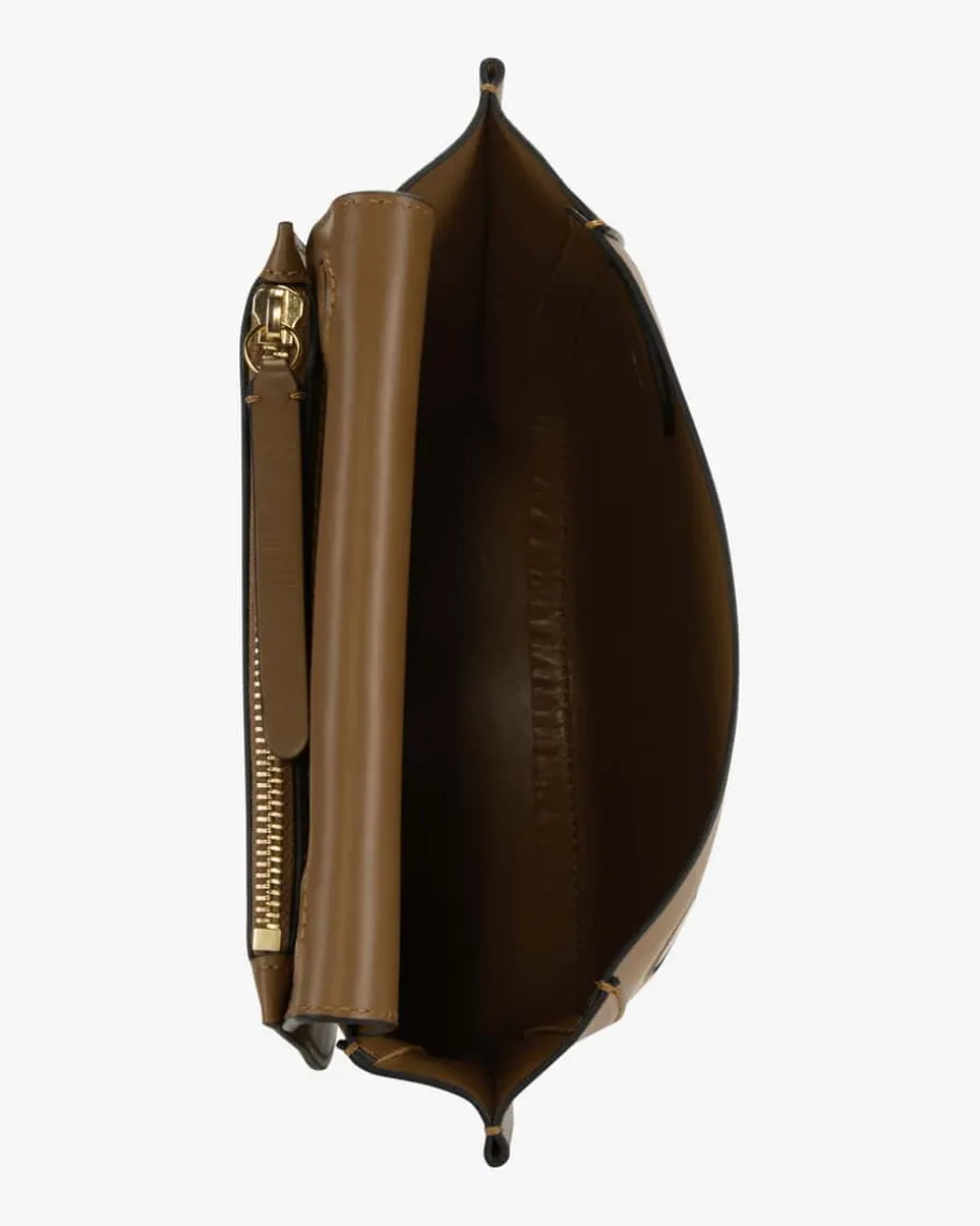 Hortensia Mini Henkeltasche für Damen von Wandler in Braun. Das ausitalienischem Leder gefertigte Modell besitzt eine markante runde Form undbietet genügend Platz für sämtliche Alltagsutensilien.