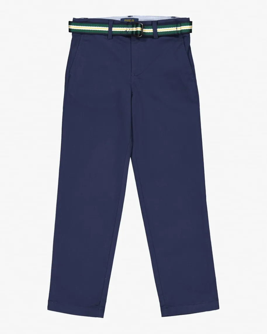 Hose für Jungen von Polo Ralph Lauren in Navy. Das Modell präsentiert sich incleaner Aufmachung, welche durch den gestreiften Gürtel harmonisch komplettiertwird.
