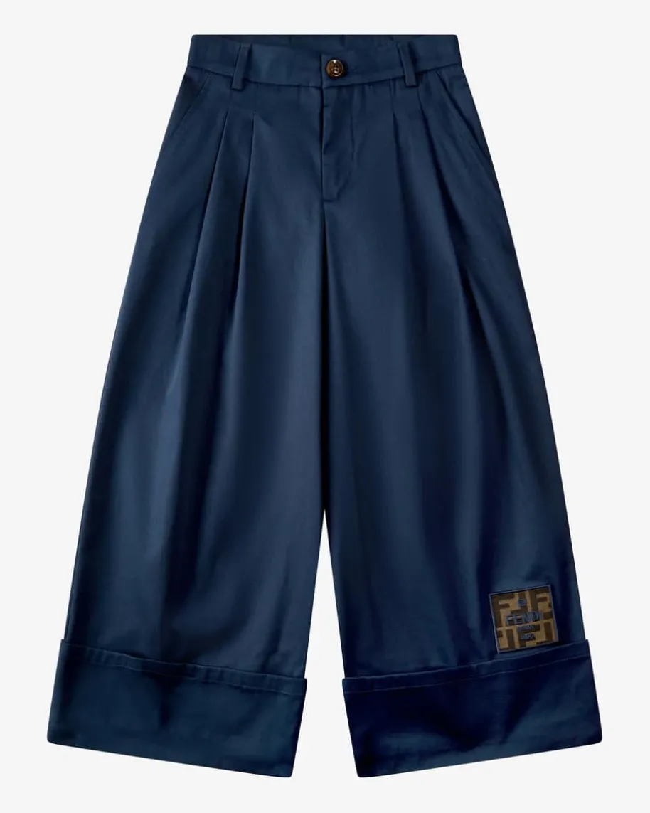Hose für Mädchen von Fendi Kids in Navy. Das Modell besticht dank der weitenPassform sowie der robusten Gabardine-Qualität als angenehmer Alltagsbegleiter,während die Bundfalten sowie Logo-Applikation einen modischen Look für IhreKleine kreieren.