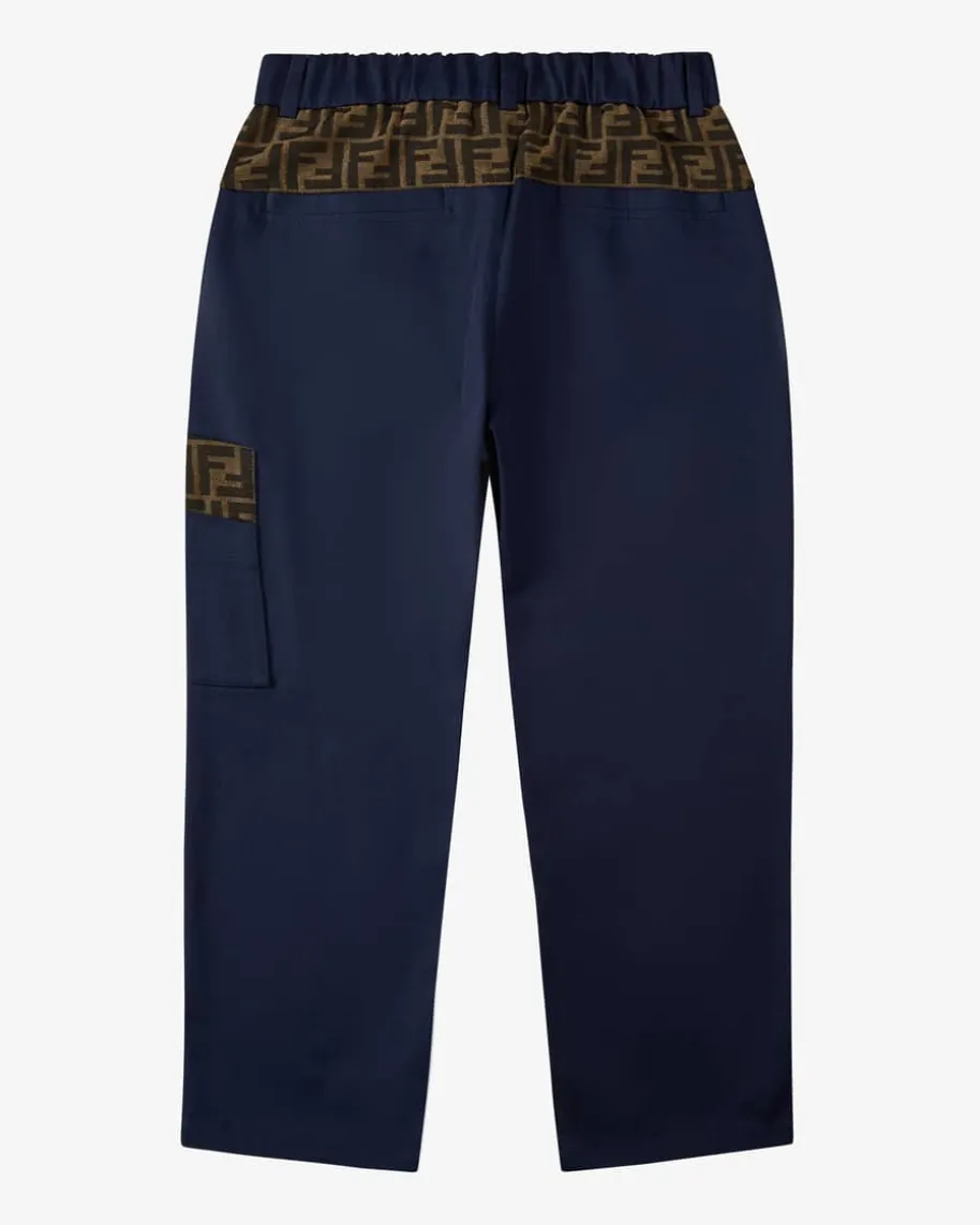Hose für Jungen von Fendi Kids in Navy und Braun. Das Modell präsentiert sich inhochwertigem Material-Mix, während die Einsätze mit labeltypischem Logo-Dessindas Gesamtbild modern vollenden.
