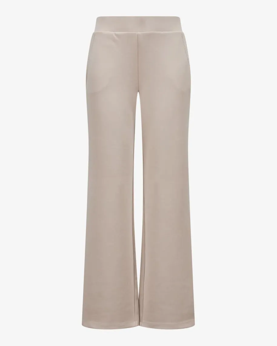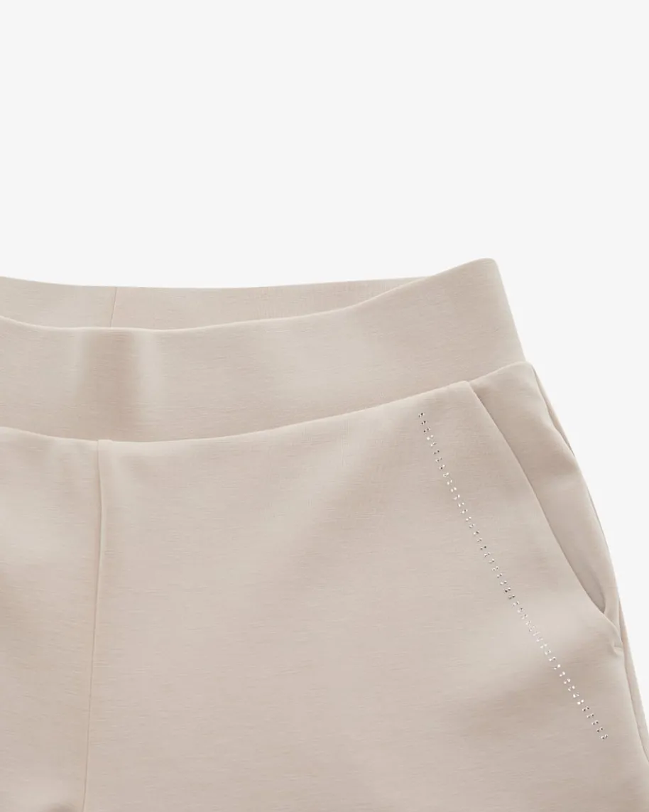 Hose für Damen von Sportalm Emotion in Stein. Das Modell mit weitem Beingarantiert dank der elastischen Material-Verarbeitung perfekten Sitz, währenddas Design mit silberfarbenen, kleinen Schmucksteinen einen legeren Favoritenmit dem gewissen Etwas kreiert.
