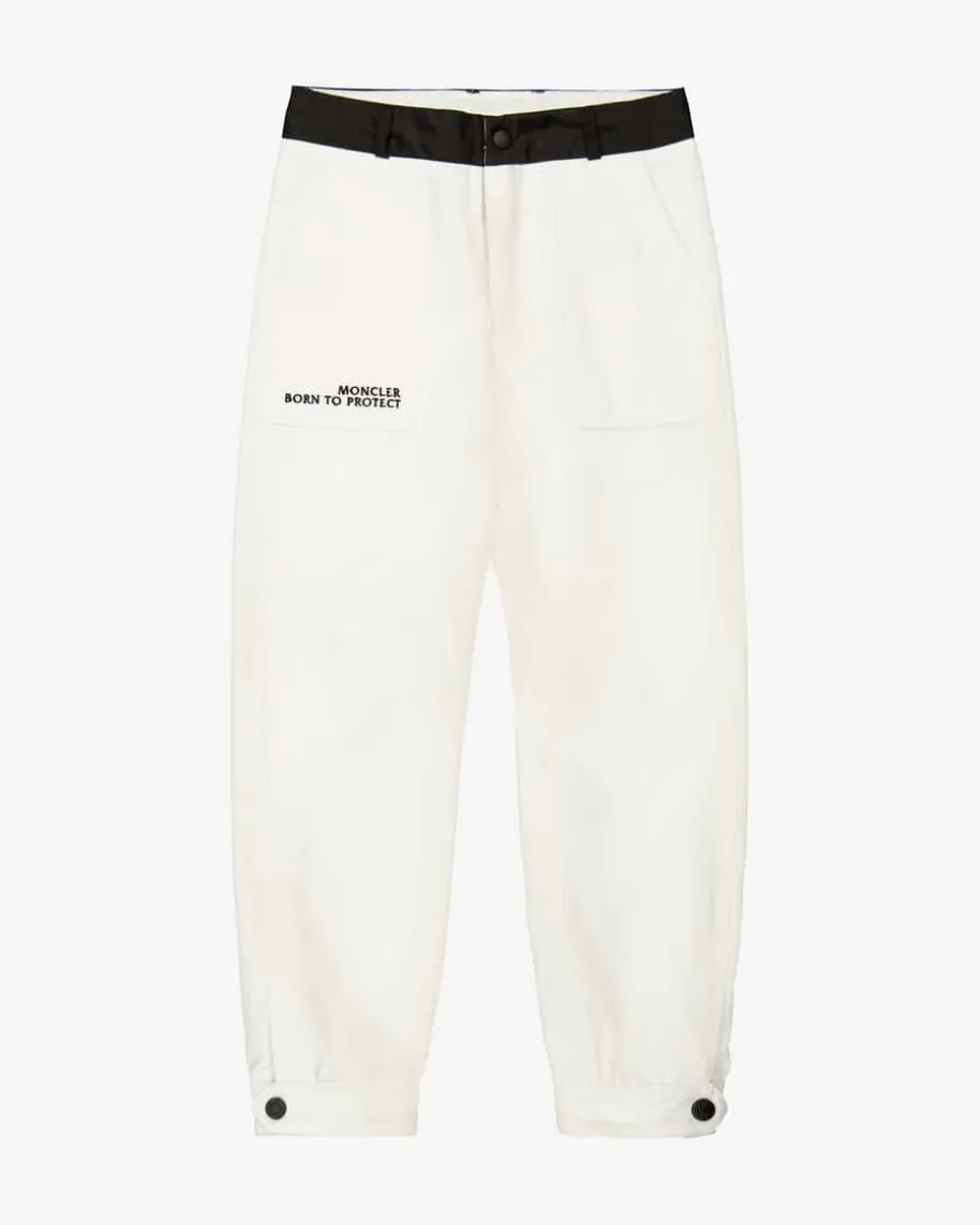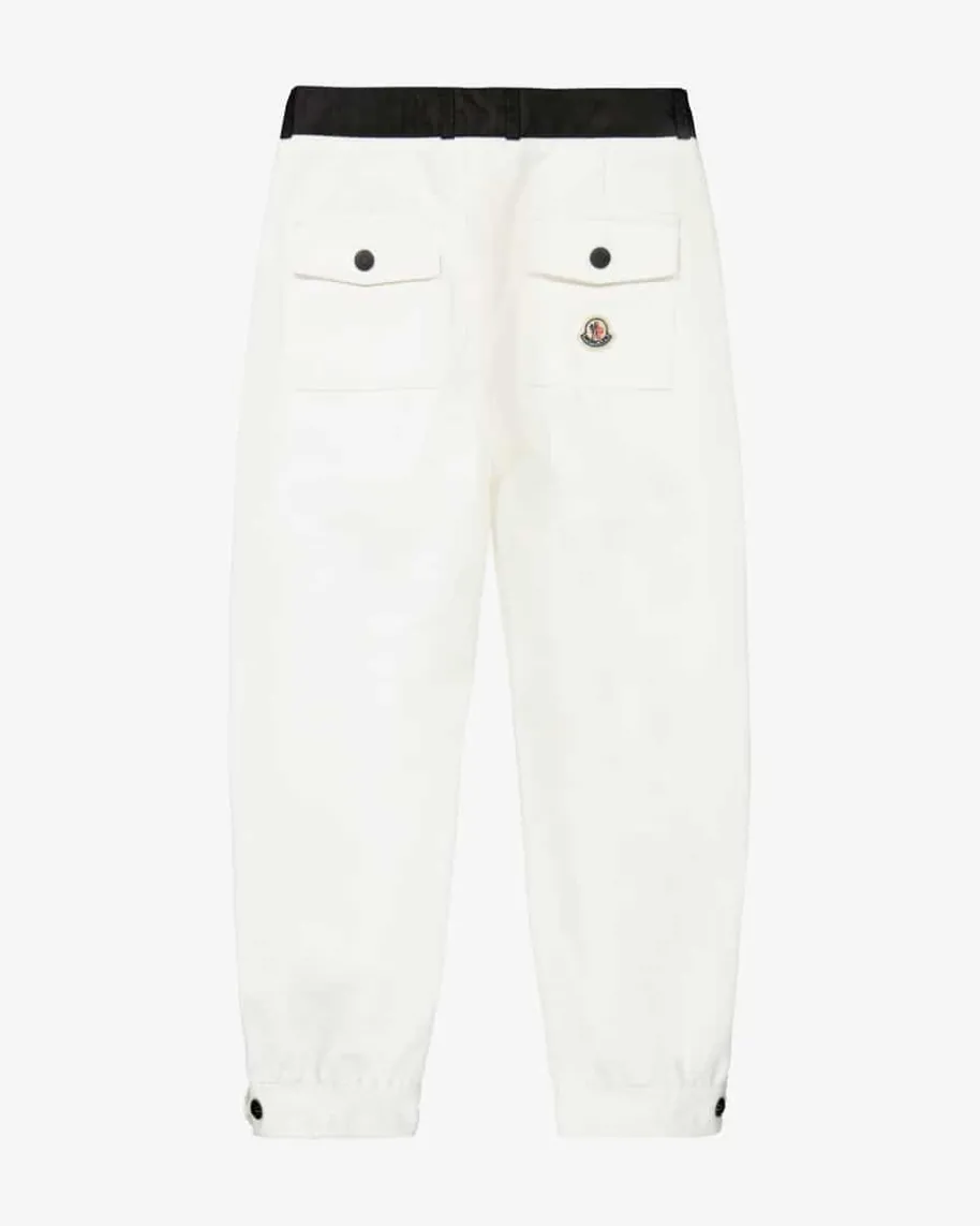 Hose für Mädchen von Moncler Enfant in Weiß und Schwarz. Das Modell bestichtdankhochwertiger Baumwoll-Qualität und komfortablen Schnitt, während diekontrastierenden Reißverschlüsse sowie geknöpfte Riegel an den Beinenden dasgewisse Etwas verleihen.