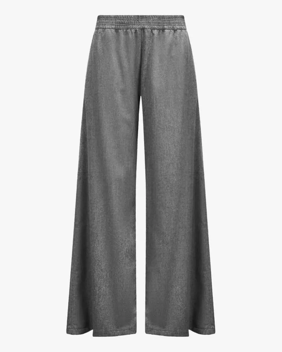 Hose für Damen von Fabiana Filippi in Grau. Das Modell präsentiert sich inhochwertigem Merinowoll-Mix, während der elastische Bund für angenehmeTragemomente sorgt, setzt die changierende Materialität zusammen mit demausgestellten Bein optische Highlights.