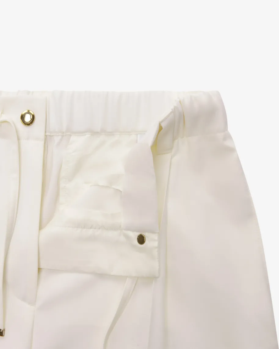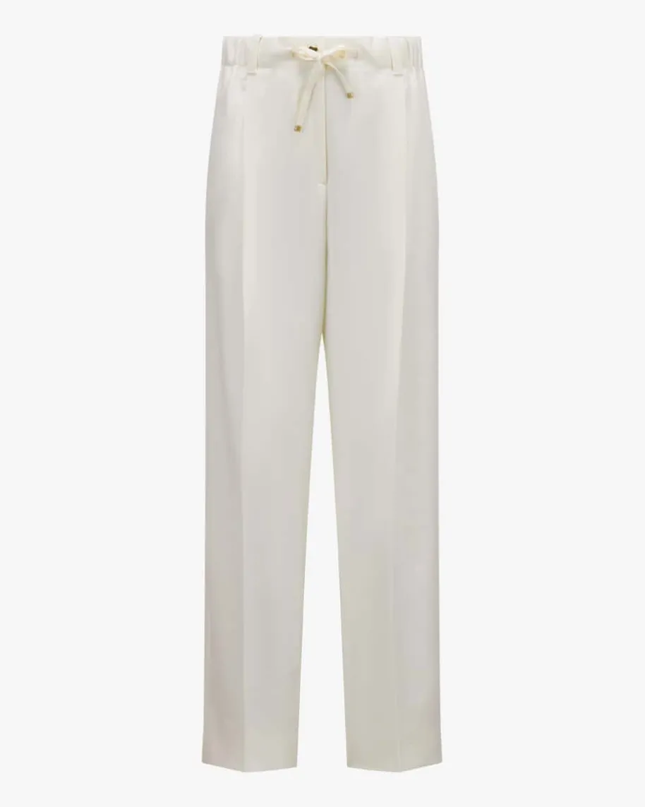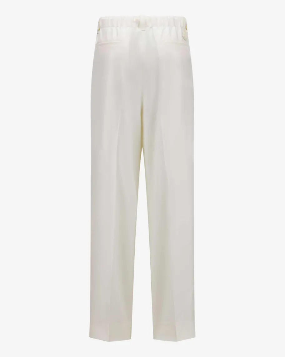 Hose für Damen von Moncler in Creme. Das Modell präsentiert sich dank derleichten, glatten Schurwoll-Verarbeitung sowie der weiten Schnittführung mitgeradem Bein als angenehmer Begleiter, welcher durch den elastischen Tunnelzug-Bund einen legeren Touch erhält. Bundfalten setzen zudem stilvolle Akzente.