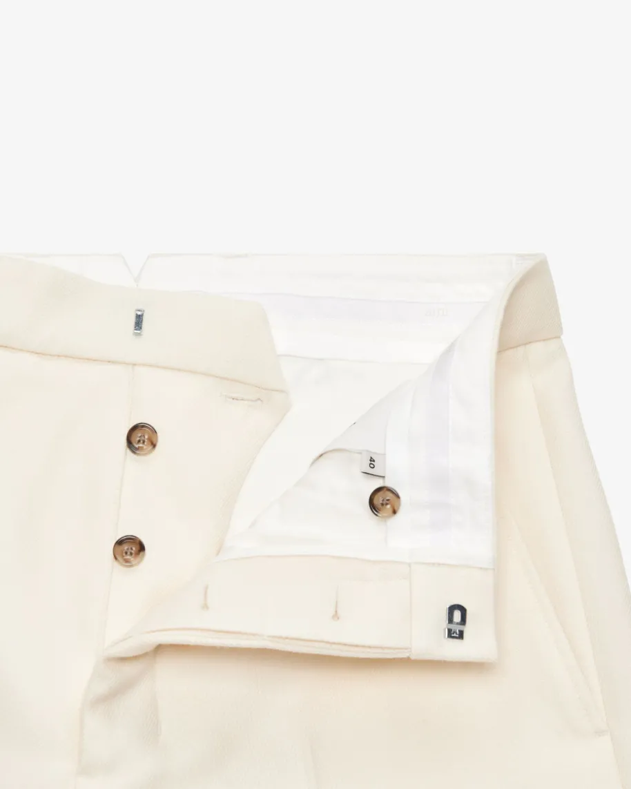 Hose für Herren von Ami Paris in Creme. Benannt nach den Freunden von AlexandreMattiussi – Mode mit persönlicher Note. Dank hochwertiger, strukturierterSchurwoll-Qualität und robuster Haptik überzeugt das Modell mit formstabilerEigenschaft, während der weite Schnitt mit hohem Bund und verkürztem Bein einenmodischen Look kreiert.