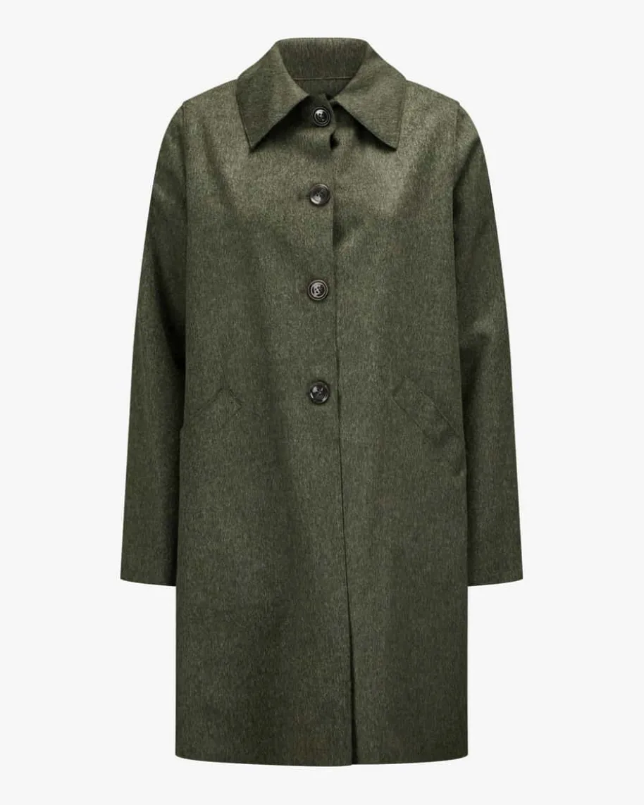 Hubertus Trachtenmantel für Damen von Münchner Lodenfabrik in Oliv. Während diefeine Merinowolle haptische Highlights schafft, sorgt das zeitlose Design einenfür einen modischen Trachtenbegleiter.