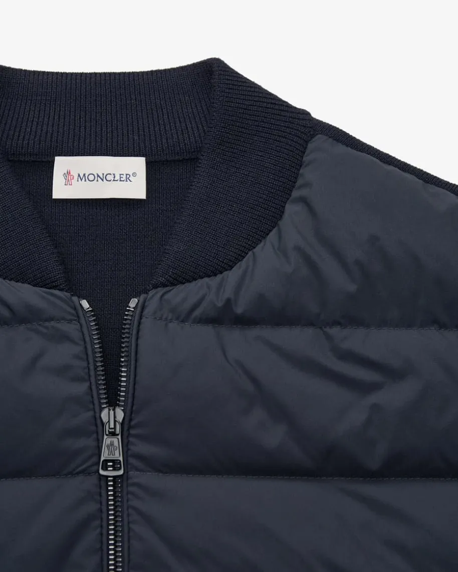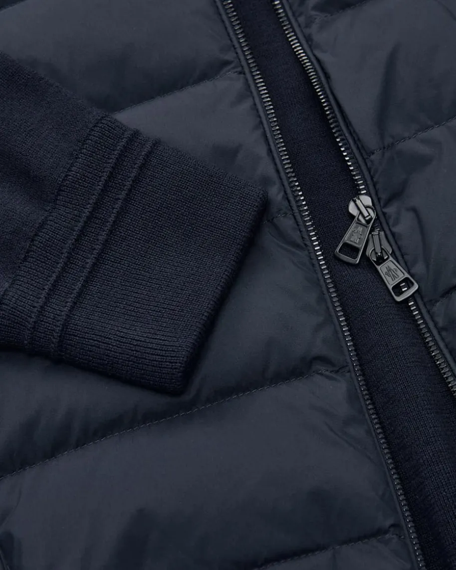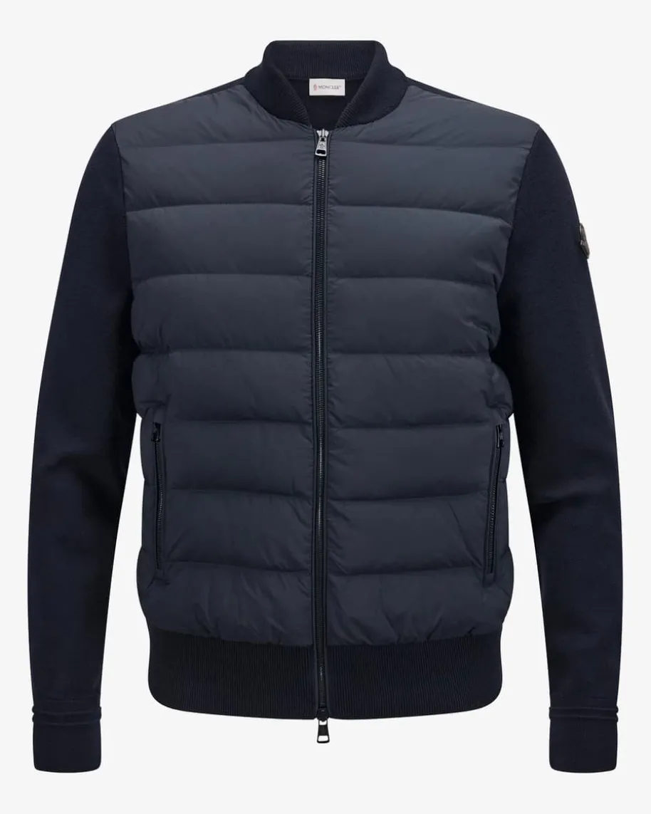 Hybridjacke für Herren von Moncler in Navy. Das Modell überzeugt mit gesteppterVorderseite, die dank ihrer hochwertigen Daunenfüllung eine optimaleWärmeisolierung garantiert. Der Material-Mix kreiert einen sportiven Look, derdurch diverse Logo-Details stilvoll abgerundet wird.