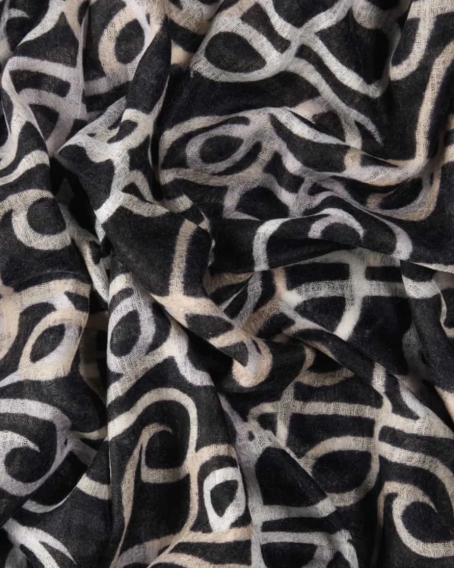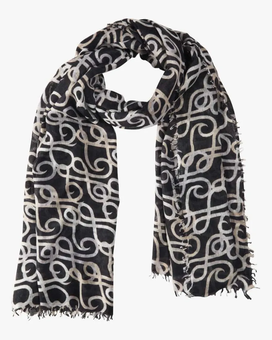 Hydabig Cashmere-Schal für Damen von Hemisphere in Schwarz, Weiß und Creme. Dankder Verwendung von hochwertiger Cashmere-Qualität in semitransparenterAufmachung begeistert das Accessoire mit besonders angenehmer Haptik, währenddas Allover-Dessin mit geschwungenem Monogramm ein besonderes Accessoire mitlabeltypischem Charme kreiert.