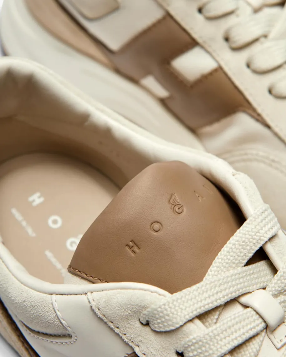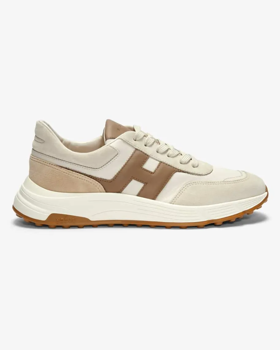 Hyperlight Sneaker für Herren von Hogan in Stein, Braun und Weiß. Das Label legtgrößten Wert auf hochwertige Verarbeitung und begeistert mit luxuriösem Design.Der ultraleichte Schuh besticht durch das sportive Design sowie der Verwendungvon hochwertigem Velours-und Glattleder. Zugleich sorgt die weich gepolsterteMemory Foam-Innensohle für besonders hohen Tragekomfort.