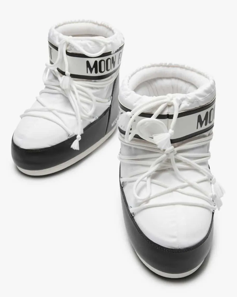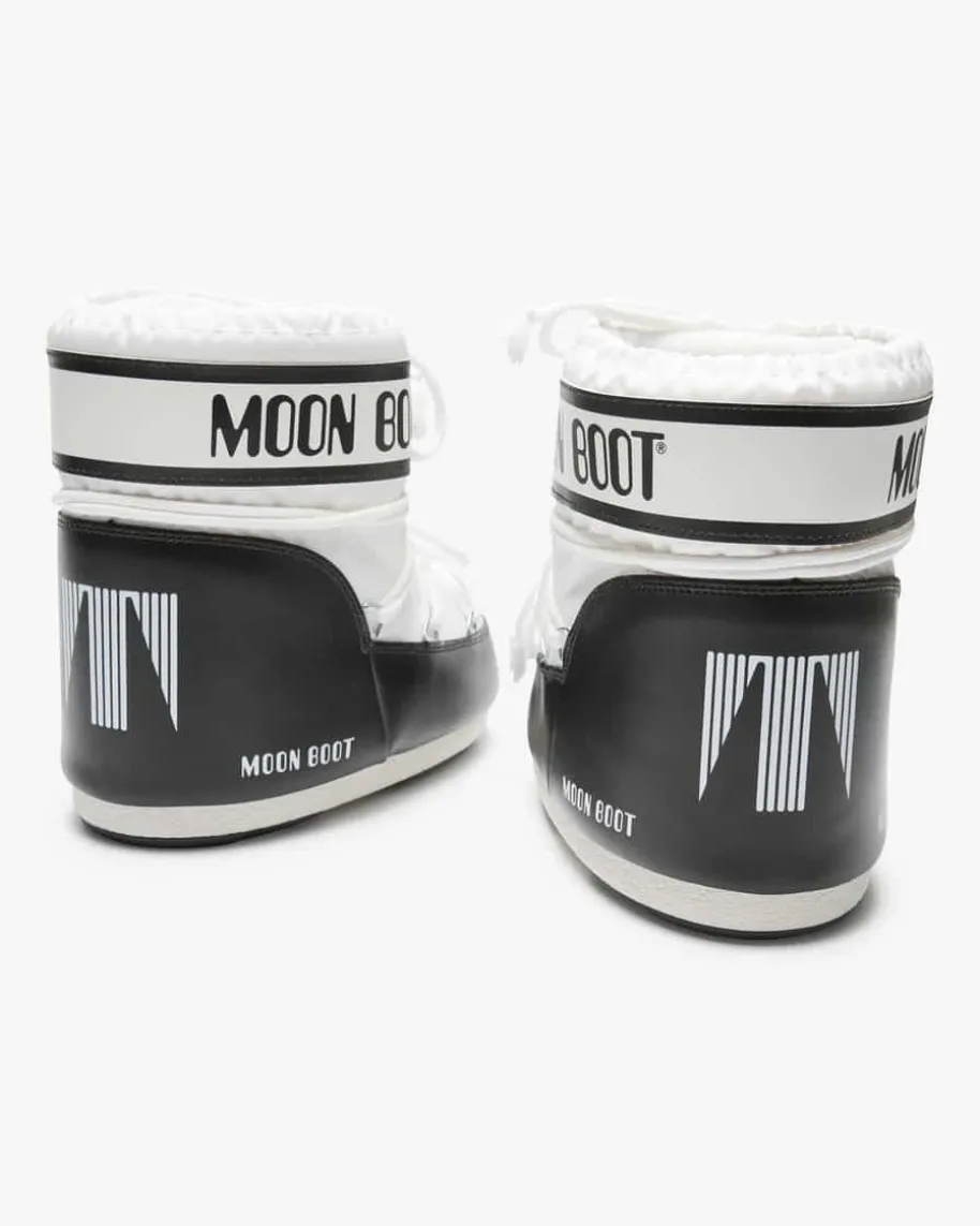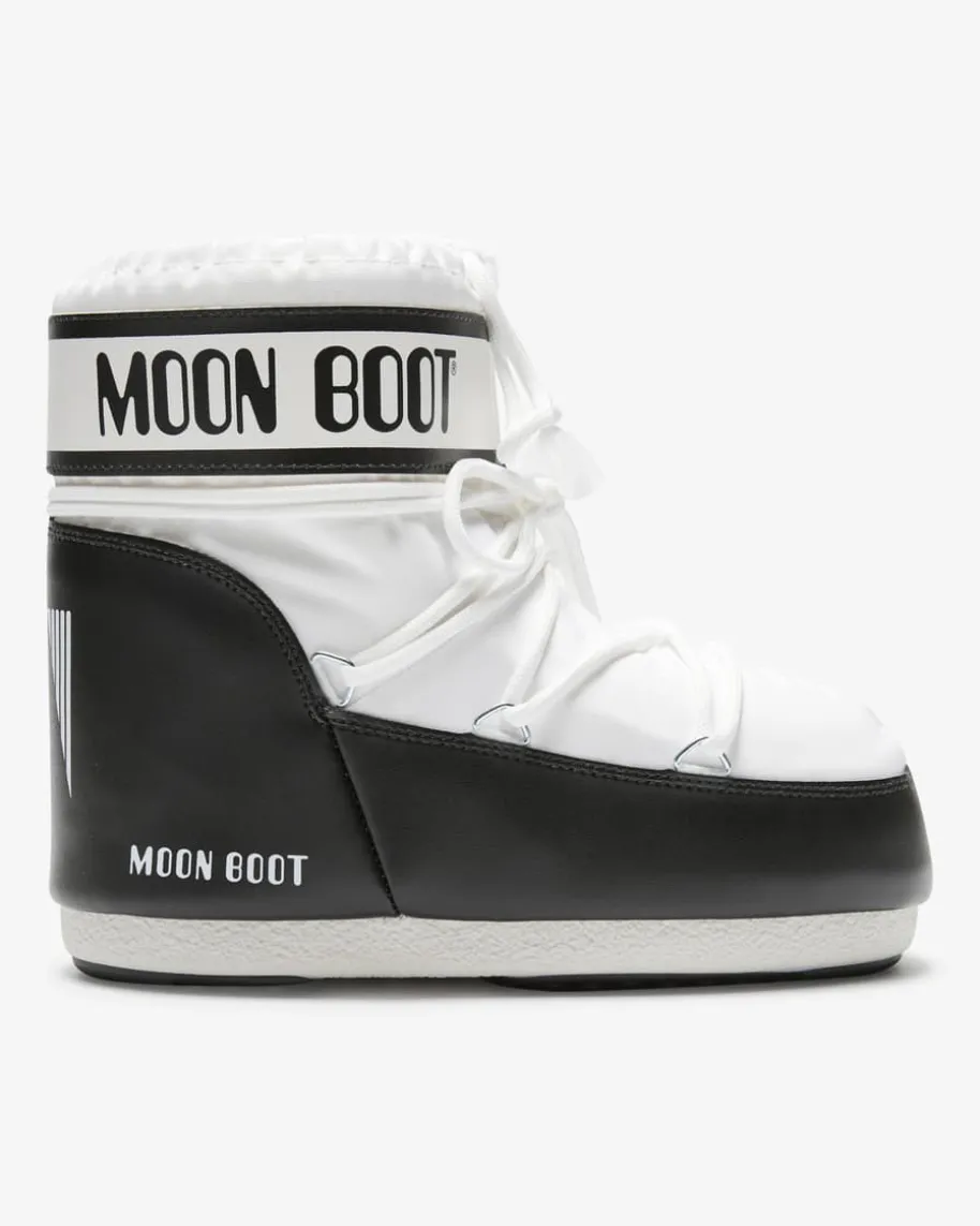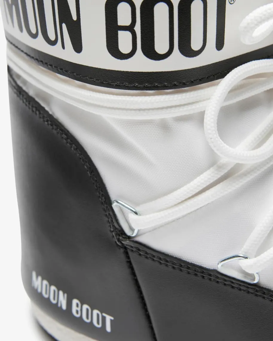 Icon Low Moon Boots für Damen von Moon Boot in Weiß und Schwarz. Das in den1970erJahren gegründete Label hat seine Inspiration in der Mondlandung von NeilArmstrong gefunden. Mit wasserabweisender Beschichtung präsentiert sich derWinterstiefel in gewohnt futuristischer Aufmachung. Diverse Logo-Details sowiedie labeltypische Schnürung vollenden das modische Gesamtbild gekonnt.