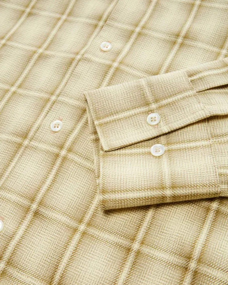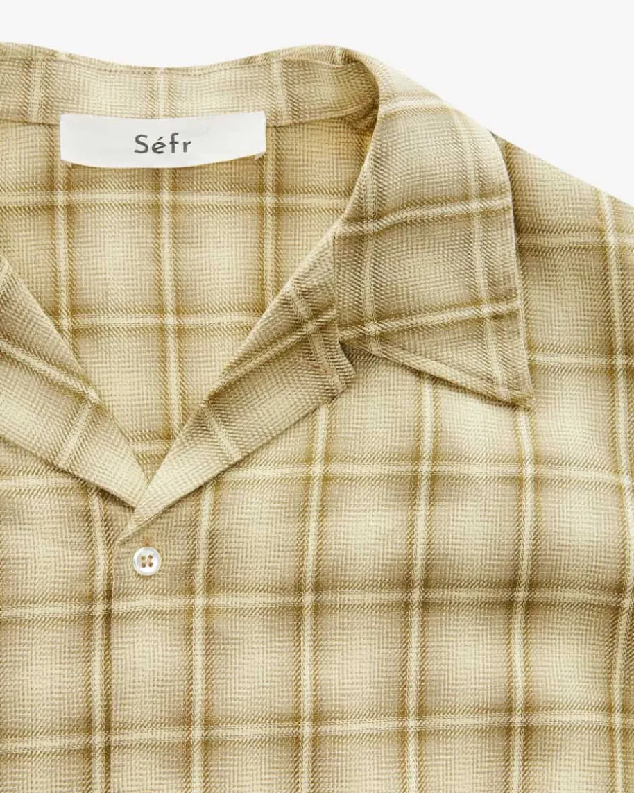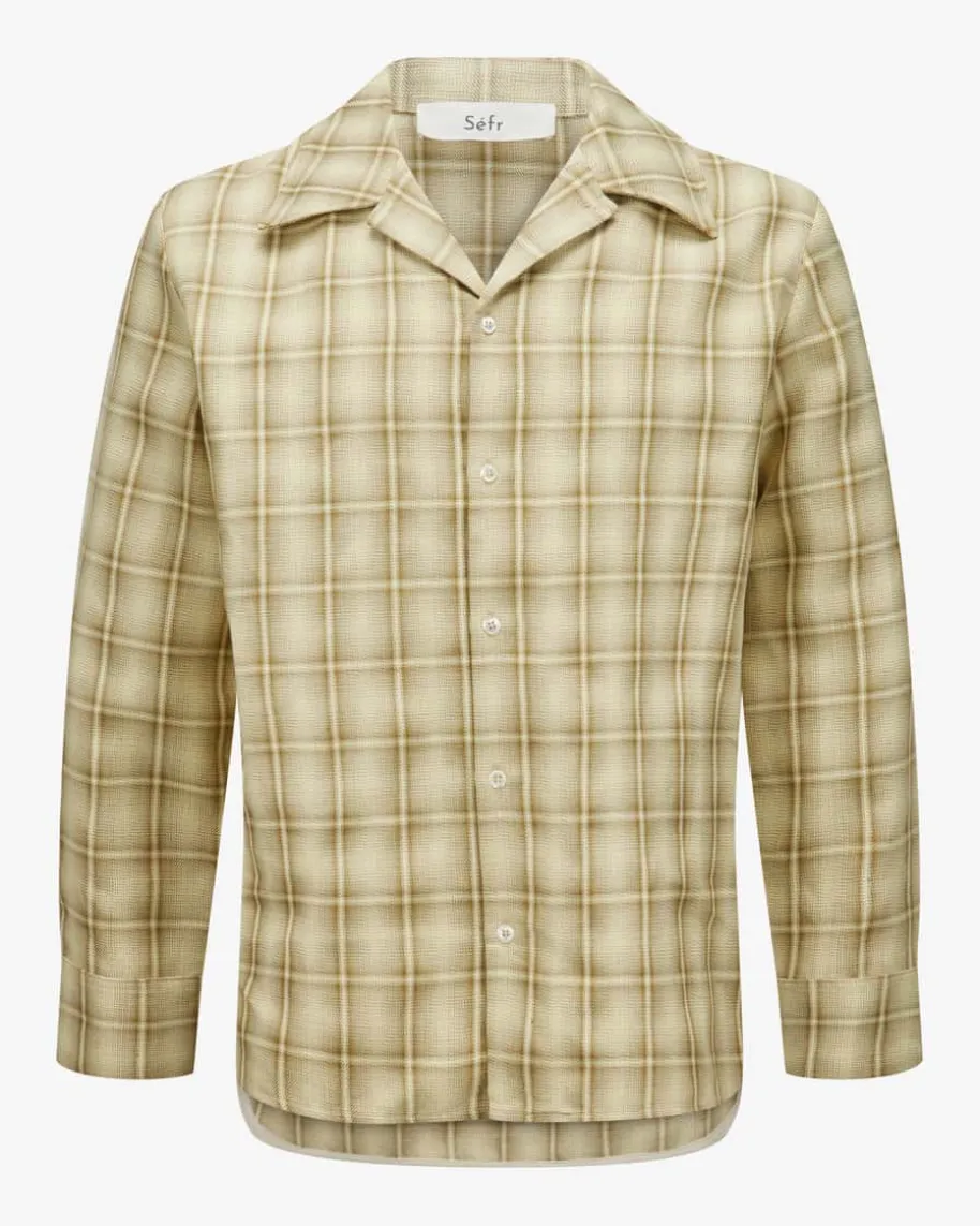 Ignacio Hemd für Herren von Séfr in Hellgelb und Khaki. Das Modell in weitemSchnitt überzeugt mit breitem Kragen und Karo-Dessin, während klassische Detailsden Gesamtlook harmonisch abrunden.