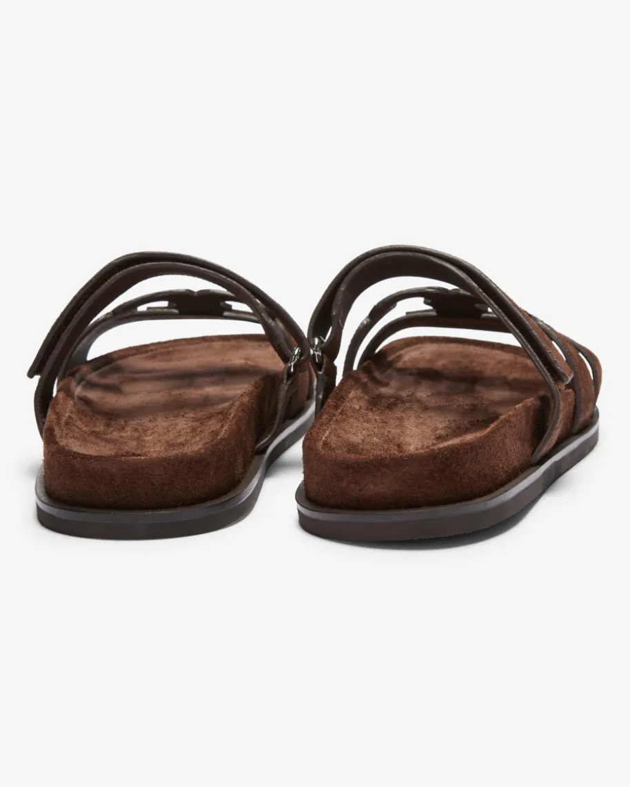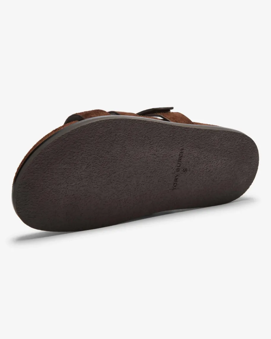Ines Pantoletten für Damen von Tory Burch in Dunkelbraun. Das Modell präsentiertsich dank der hochwertigen Veloursleder-Riemen in modischer Aufmachung, währenddas geformte Fußbett ein angenehmes Tragegefühl verspricht.