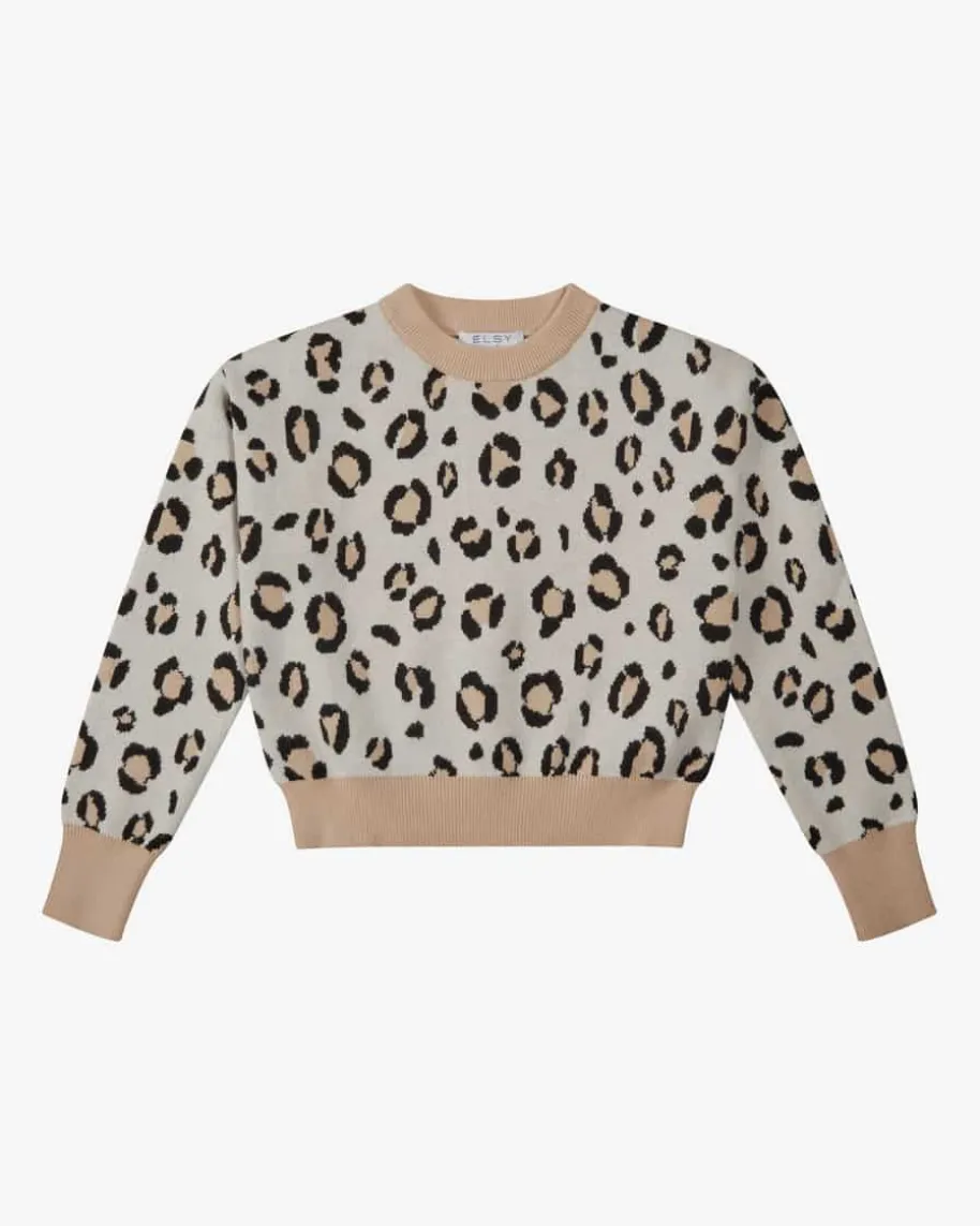 Inira Pullover für Mädchen von Elsy in Beige, Schwarz undCamel. ItalienischesLabel für exklusive Kindermode – stilvoll unddetailverliebt. Dieses Modellüberzeugt mit weicher Haptik und stilvollem Leoparden-Dessin. Ein modernerBegleiter für Ihre Kleine.