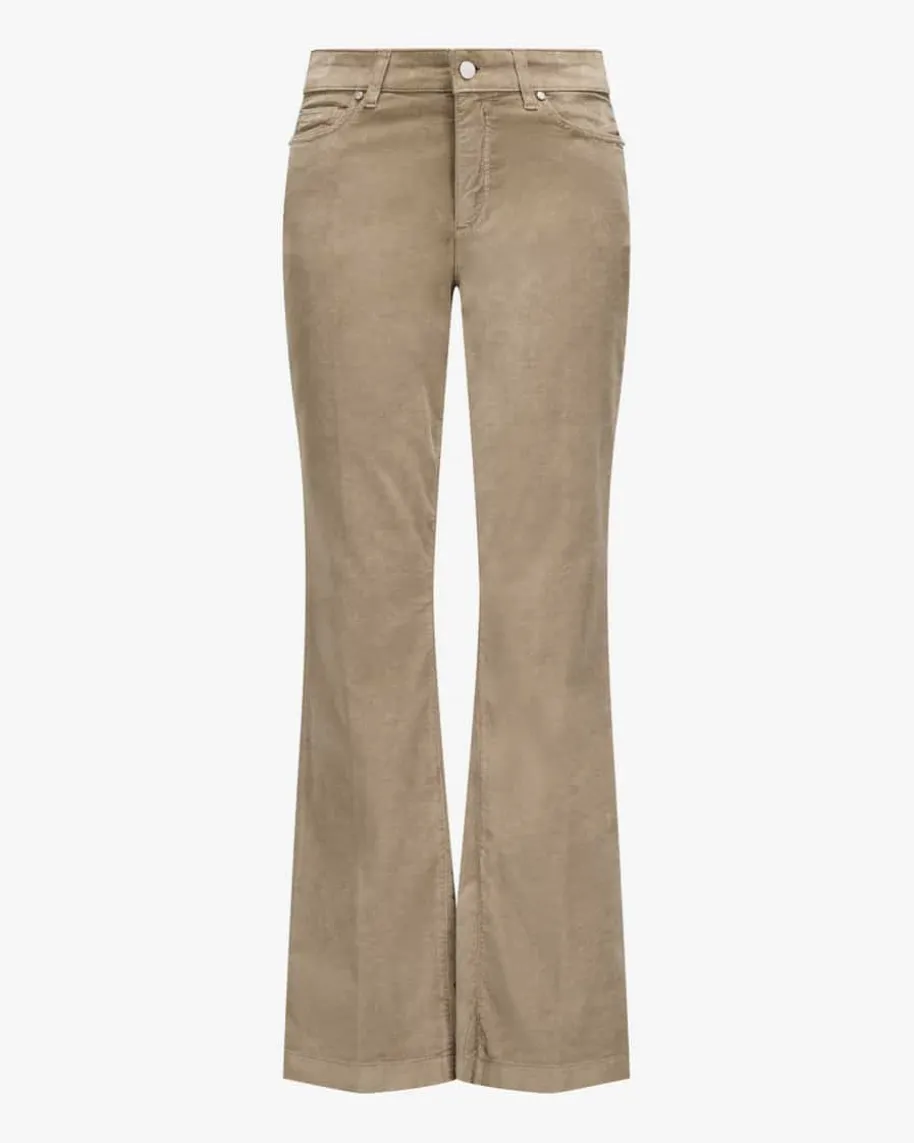 Iris Samthose für Damen von Latino in Sand. Das Modell besticht dank dem dezentausgestellten Bein mit optimaler Passform, während die Samt-Qualität zusammenmit den labeltypischen Logo-Details optische wie auch haptische Highlightssetzt.