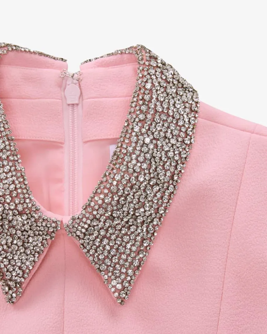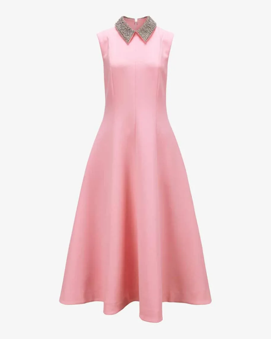 Isabella Kleid für Damen von Rebecca Vallance in Rosa. Das Midi-Modell erhältdurch den Fit n‘ Flair-Schnitt sowie die Abnäher eine feminine Silhouette,während der spitze Kragen mit changierendem Schmuckstein-Besatz für einenextravaganten Touch sorgt.