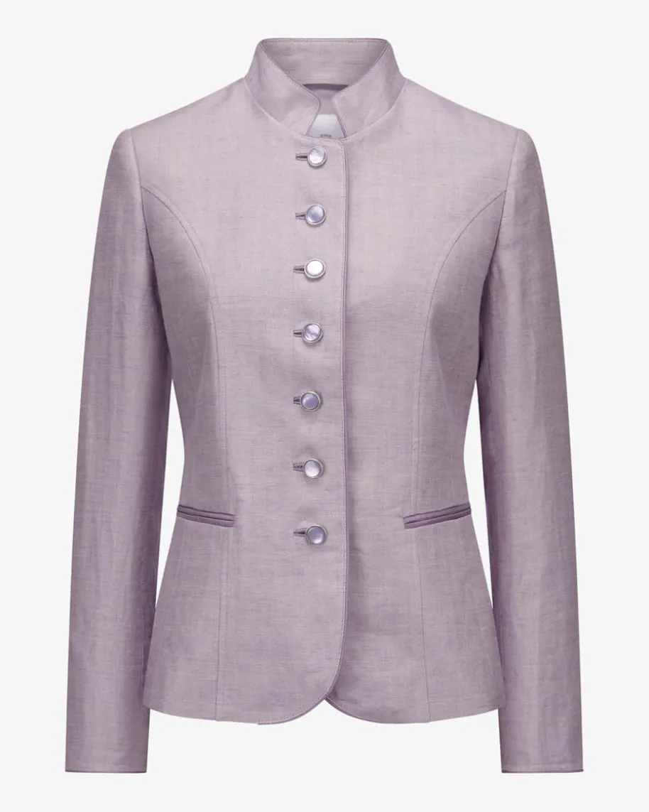 J. Bern Leinen-Trachtenblazer für Damen von LODENFREY München 1842 in Flieder.Das taillierte Modell in verkürzter Passform überzeugt dank fein strukturierterLeinen-Qualität sowohl haptisch als auch optisch, während die changierendenKnöpfe stilvolle Akzente setzen und so einen femininen Begleiter für moderneTrachten-Looks kreieren.