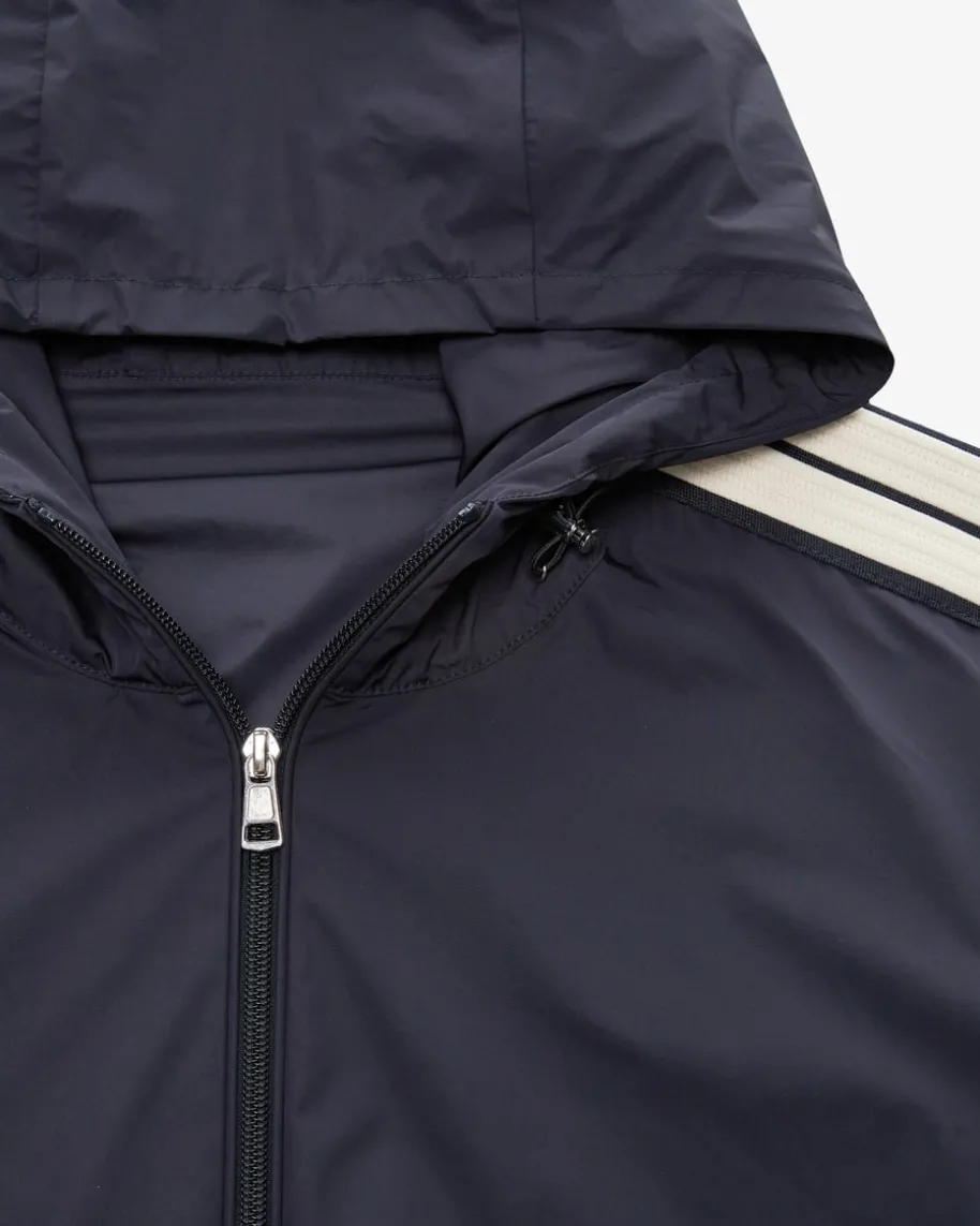 Jacke für Herren von Moncler in Navy und Weiß. Das Modell präsentiert sich dankmodischer Kontraststreifen in sportiver Aufmachung, während elastische Einsätzeund Bündchen den perfekten Sitz versprechen.